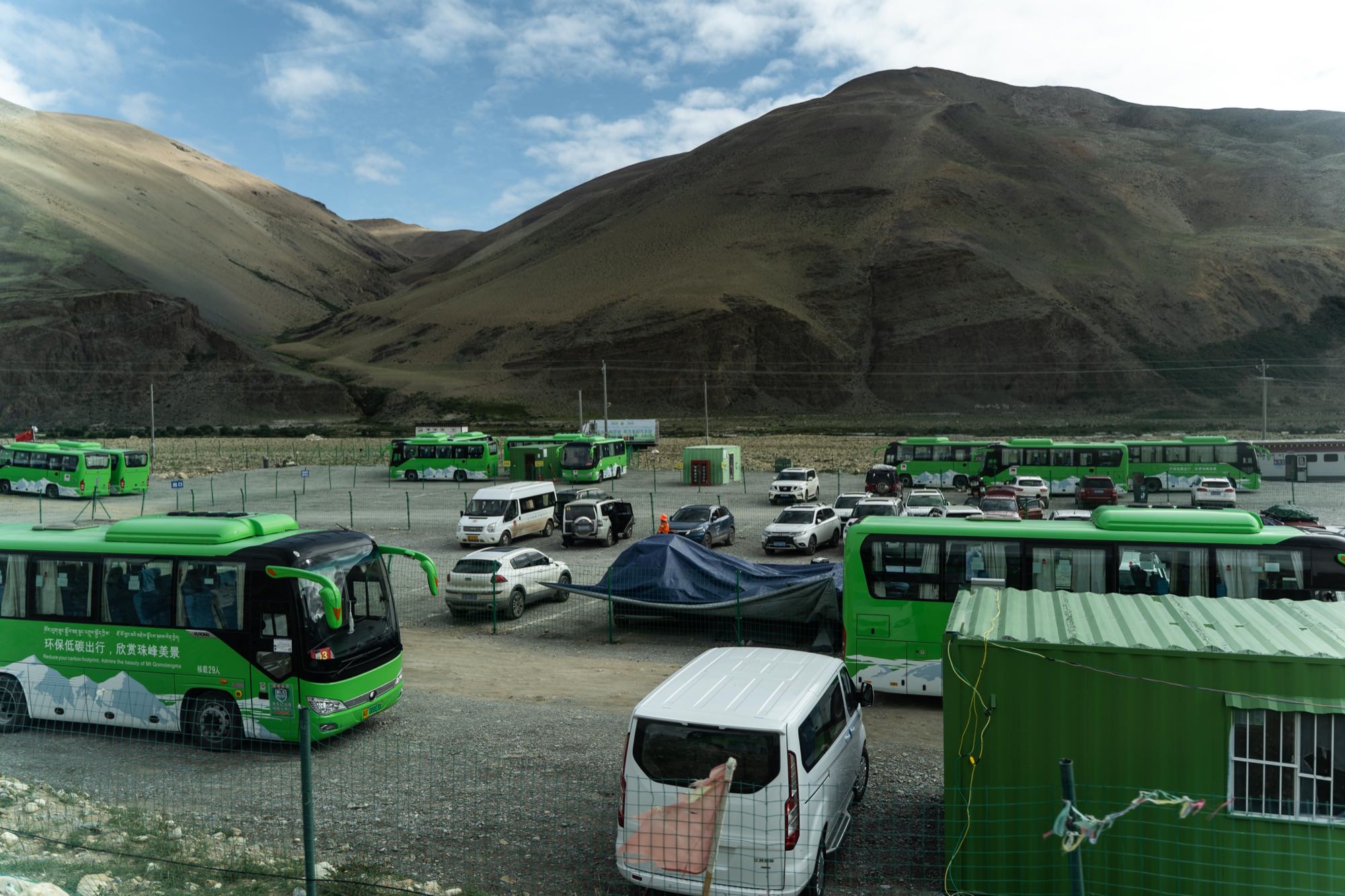 现在珠峰大本营已经不允许自驾车辆进入,统一从这里换乘「环保车」,额外收费120元一人,不想交钱也可以,也可以选择徒步20公里去大本营。说好听点,叫环保,说难听点,咳咳。