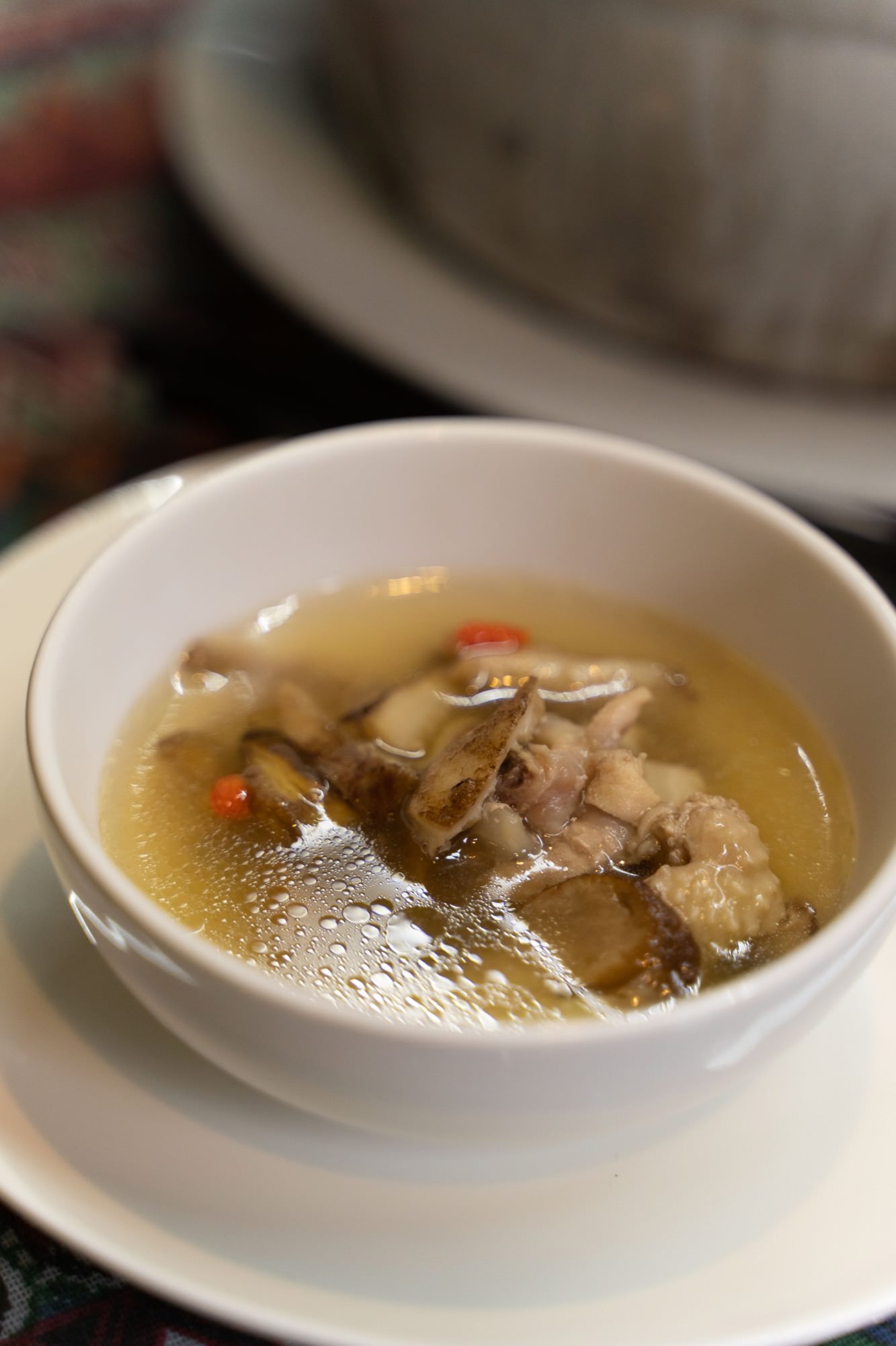 店家推荐的一个菌菇鸡汤,挺贵的,很油,不太合我胃口,感觉有点亏。