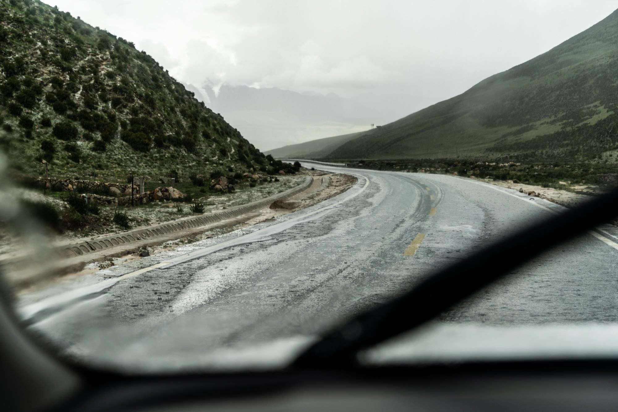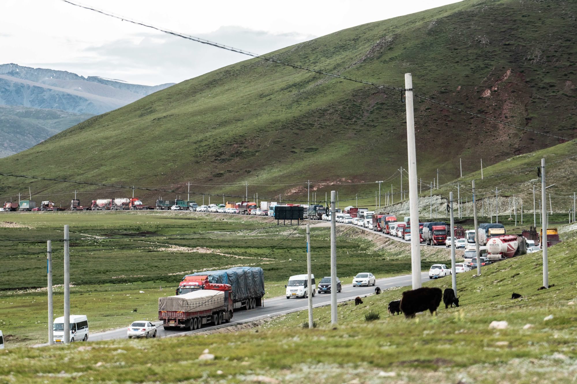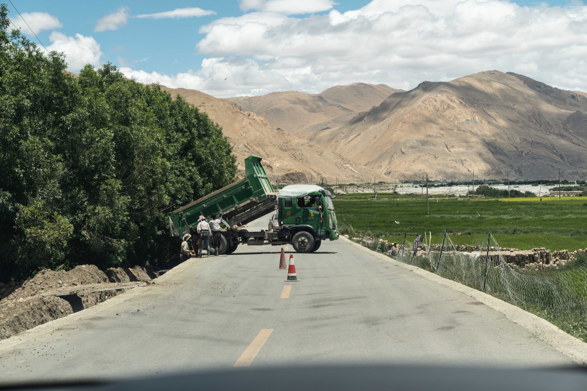 离开珠峰,今天要返回日喀则,走回头路,回程途中见到一辆卡车在弄什么东西,堵了10多分钟。