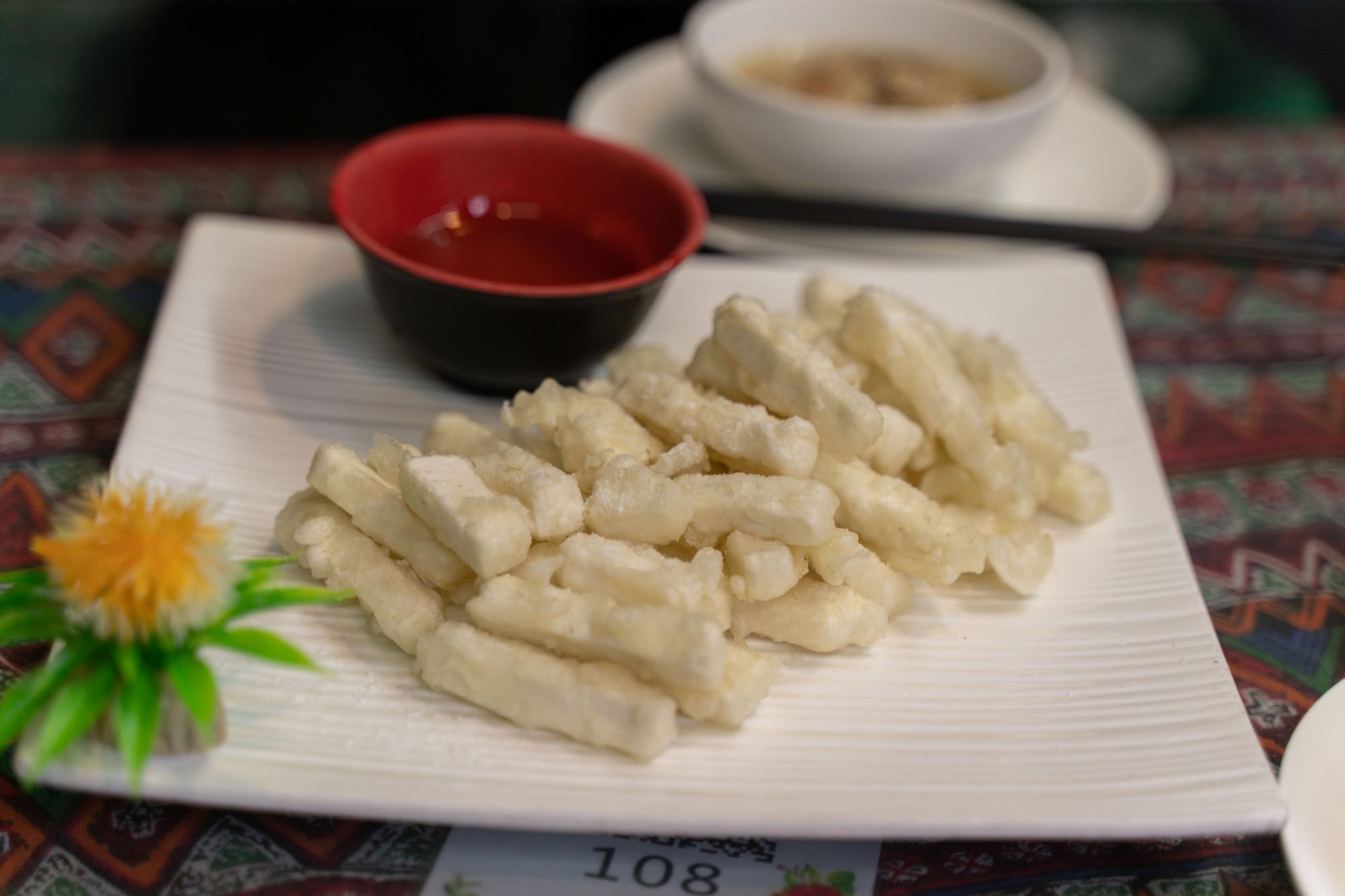 一个云南小甜食,蘸着花酱吃,还算有特色。这家店感觉属于那种做游客生意的店,价格偏贵,菜色一般,以后还是要避开这种在景区的餐厅。