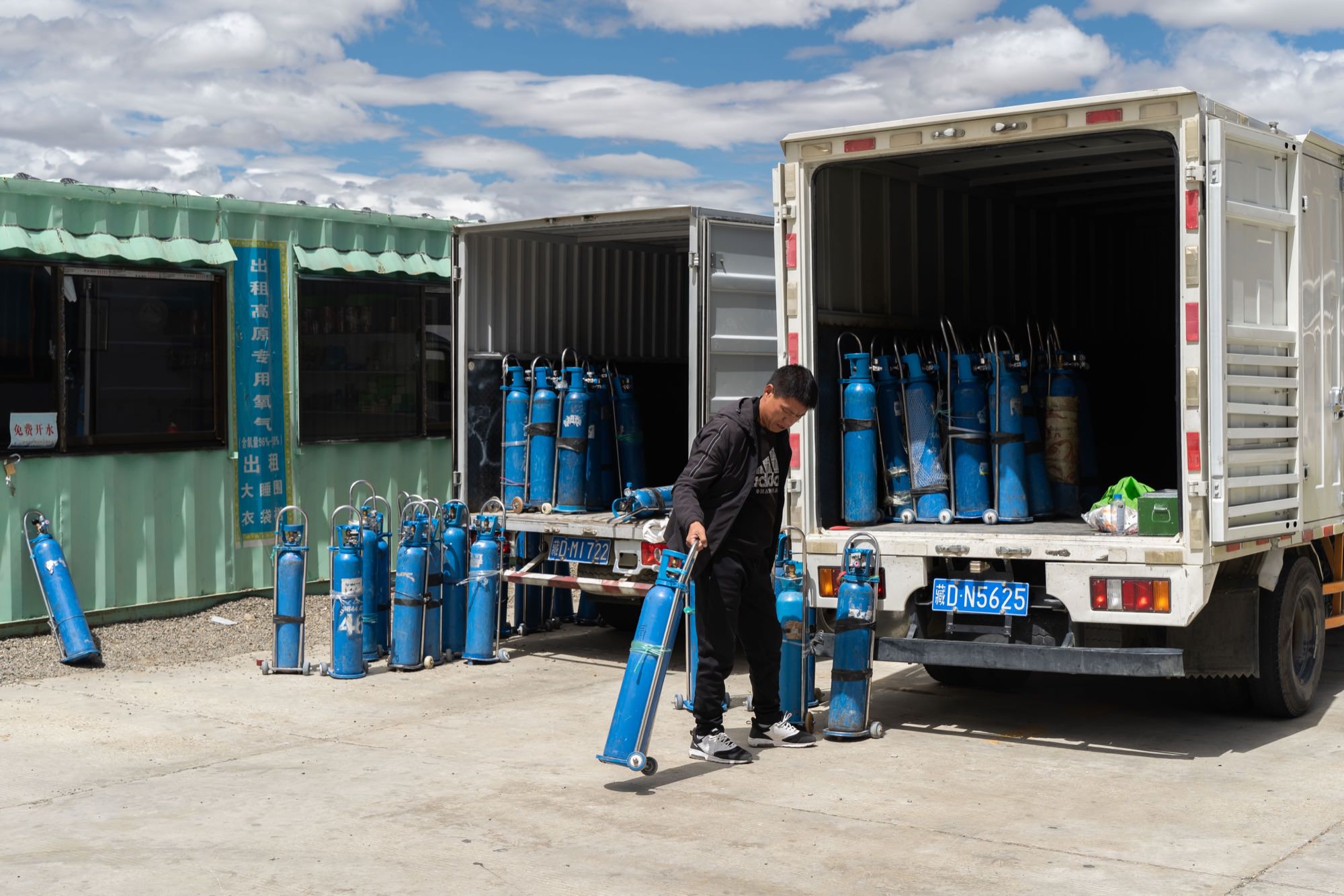 见到一辆装满了氧气的车,问了下一罐要600人民币,见到不少旅游车都会搞几瓶,看样子用氧气的人还是不少的。
