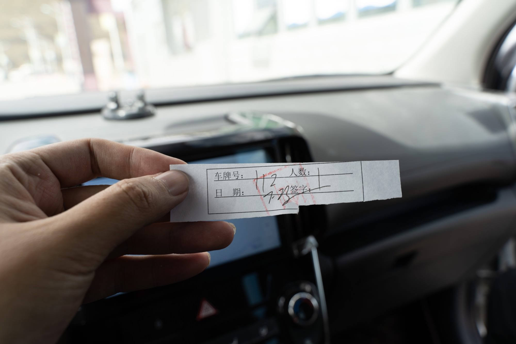 登记之后会给一个条子,记录车牌号,人数等等,现在边境形势有点紧张,严格点也挺好的。