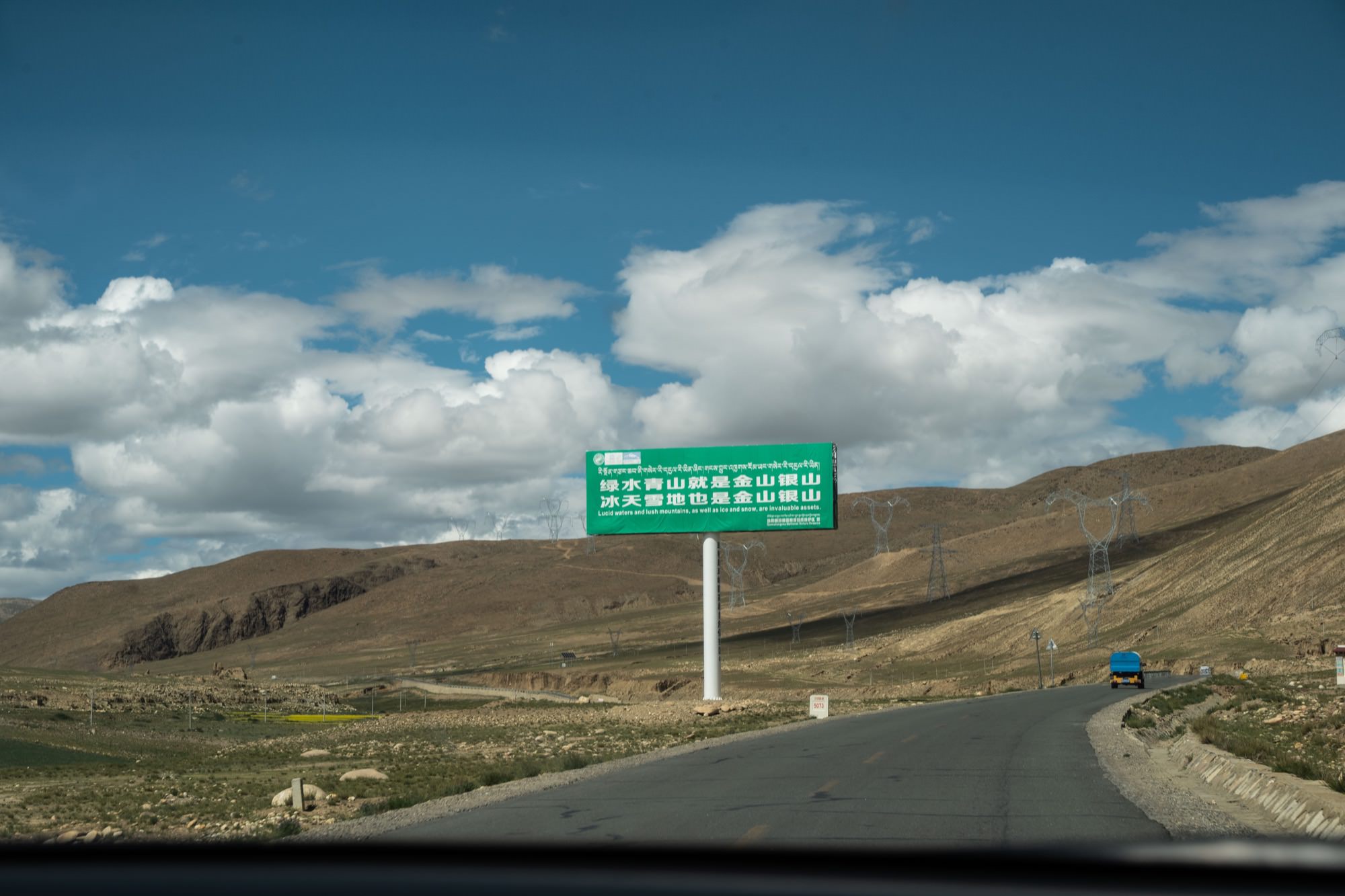 西藏这一路的标语不少,但是有一个特征,就是离开了拉萨周边后,基本没有「商业广告」,我见到的大部分广告牌和标语,都是政策性或者环保相关。