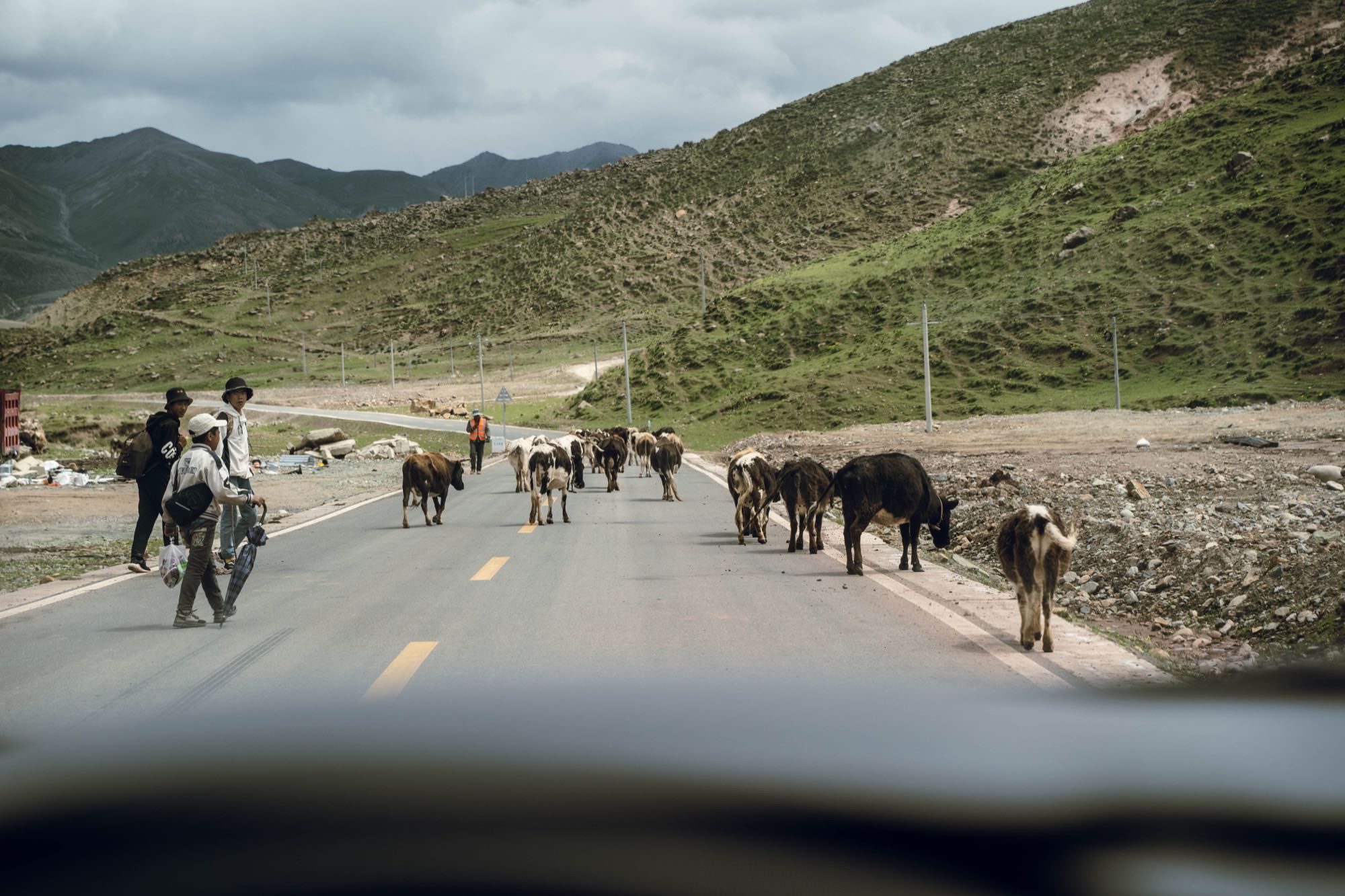 由于开始接近城镇,也开始接近纳木错,路上车也慢慢多了起来。