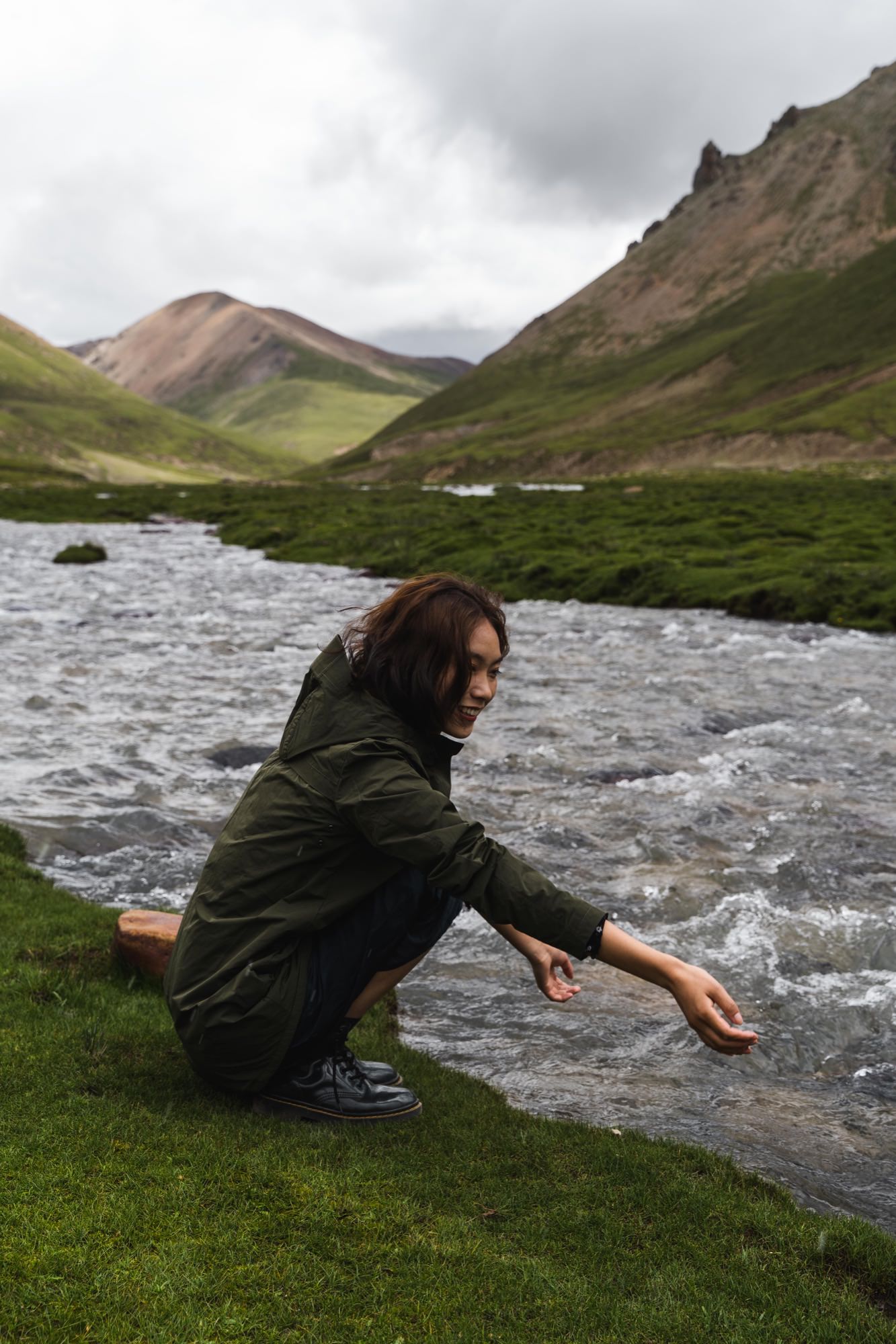 路边不远处有一条小河,河水很清澈也很冰凉,应该也是冰川融水,河边还有不少土拨鼠的洞,见到我们过来躲进洞里。
