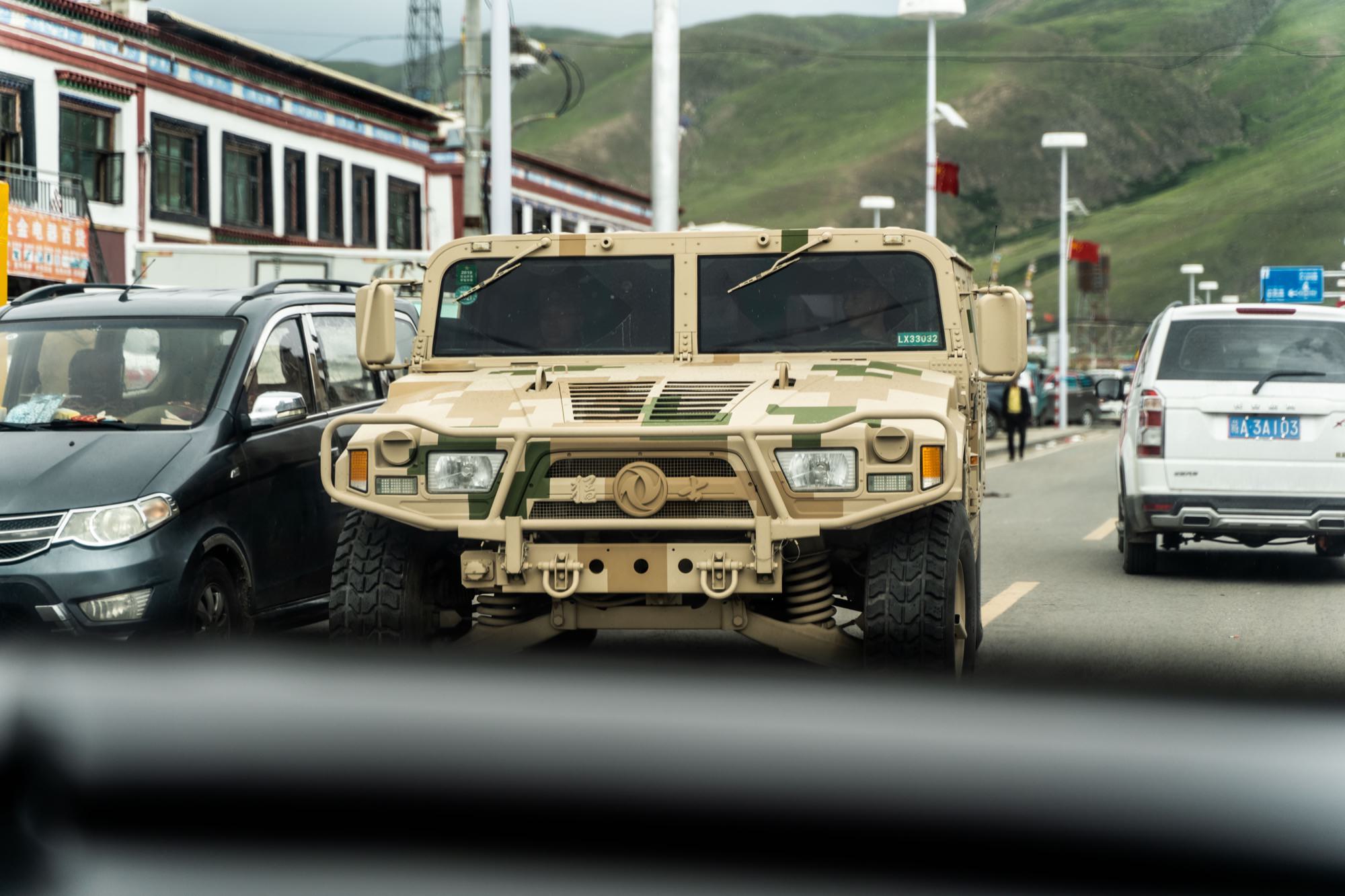 进入羊八井镇,由于羊八井是前往拉萨和纳木错的交汇点,车一下子多了很多,甚至会堵车,在镇上遇到了东方猛士,矮矮壮壮的还挺好看的。