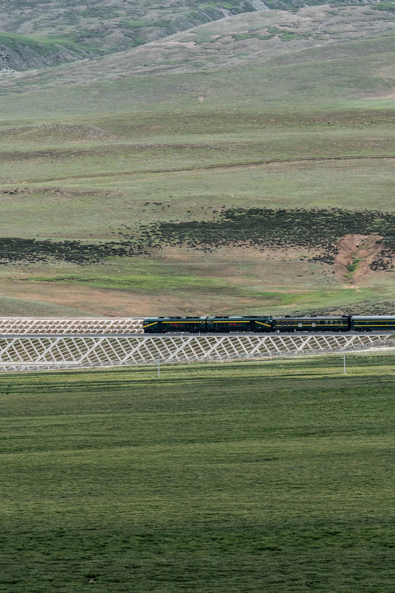 青藏铁路,一辆和谐号列车经过,高原火车都经过了专门的改装,2012年的时候,我就是从拉萨坐火车回的广州,青藏段的风光还是很不错的,就是50多个小时没折腾死我。