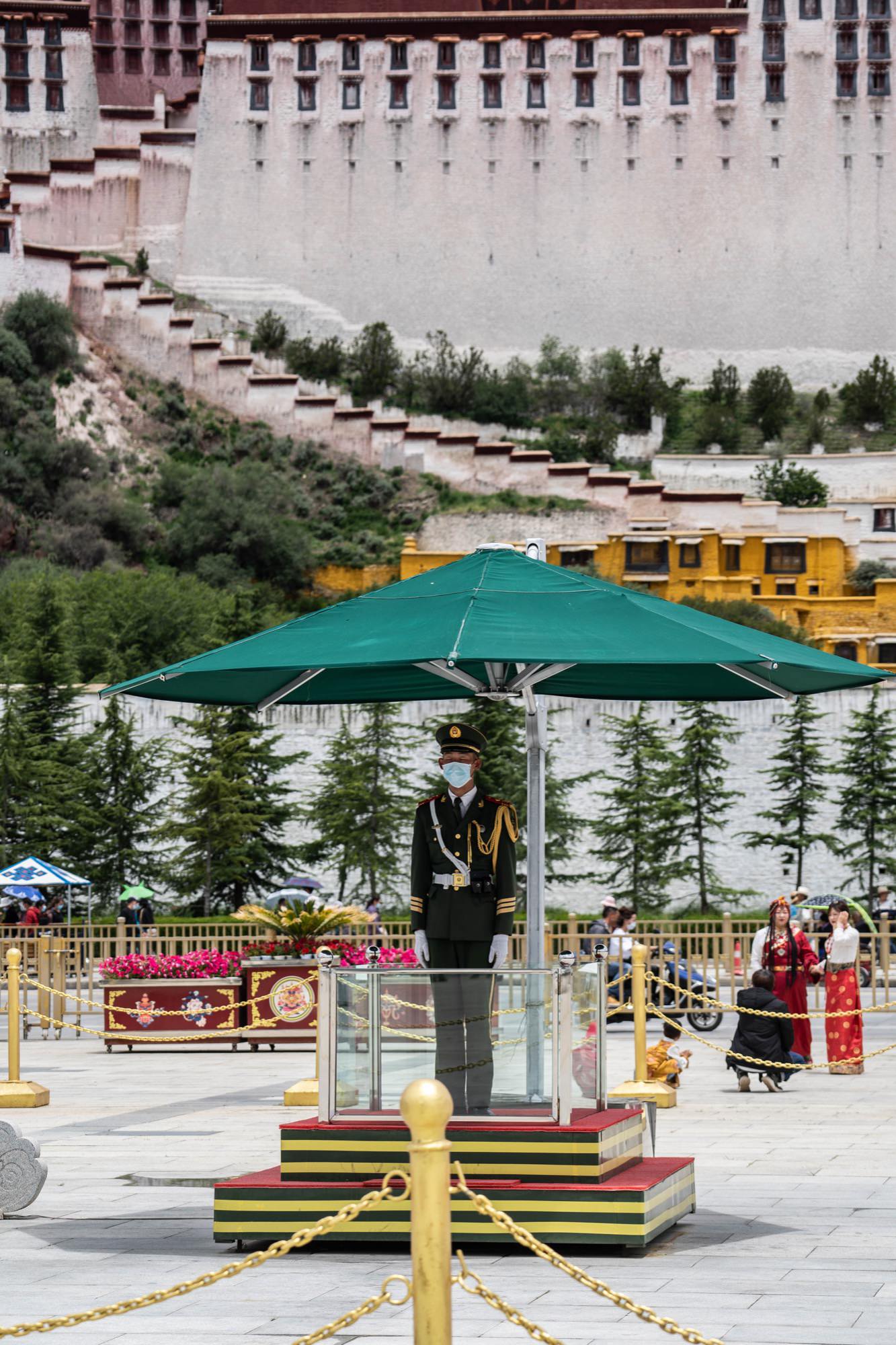 站岗的武警同志,现在拉萨的治安和社会氛围已经比以前好很多了。