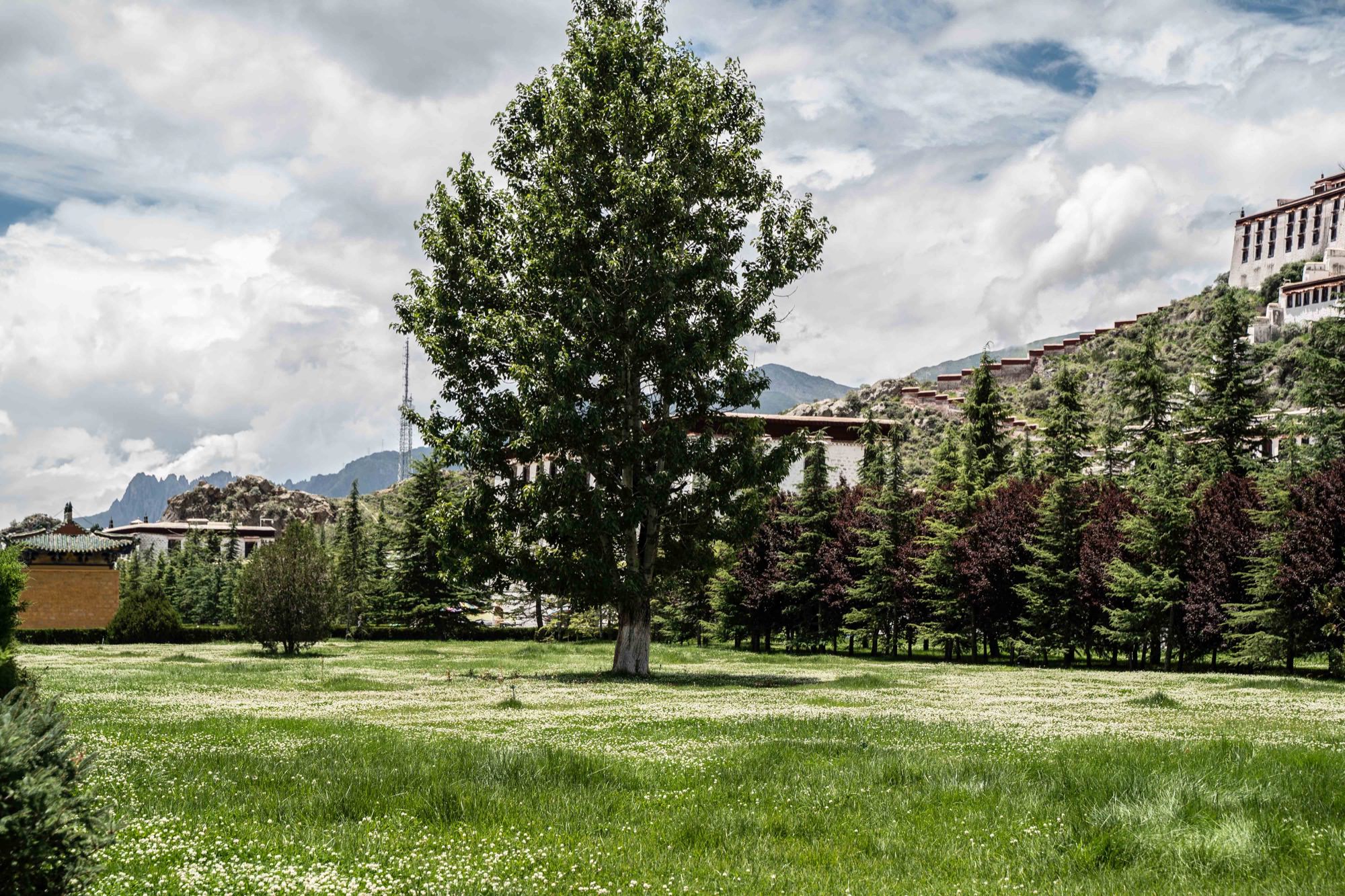 布达拉宫门口草地的一棵树,虽然今天多云,但是太阳还是挺刺眼的。