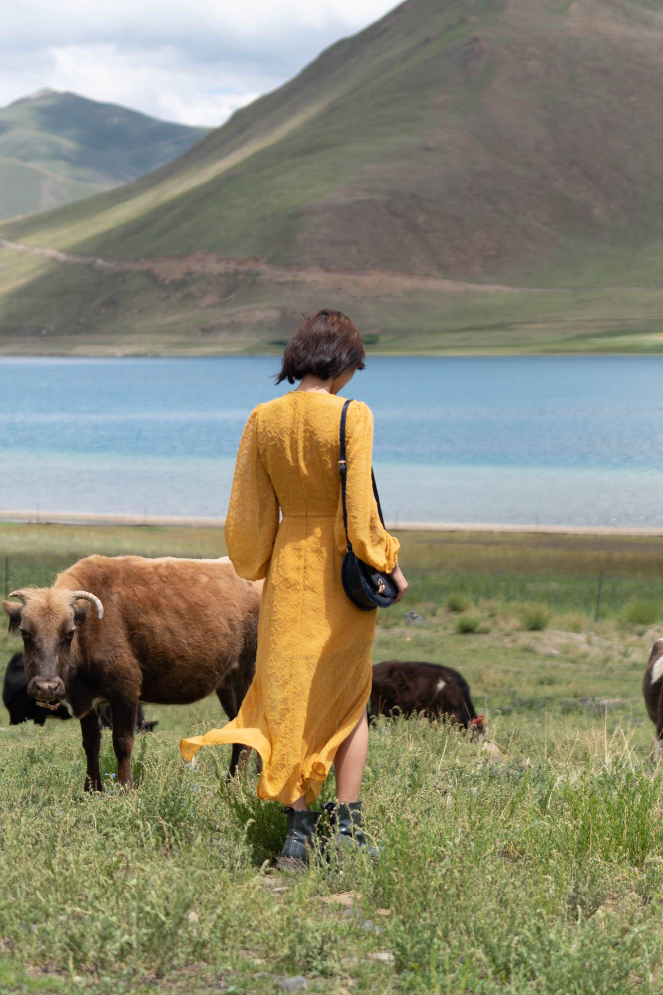 下车在湖边走走,还有人在这边放牛,也不怕人,走过去也不躲。