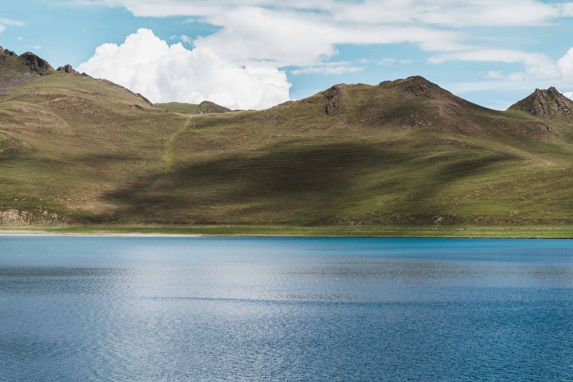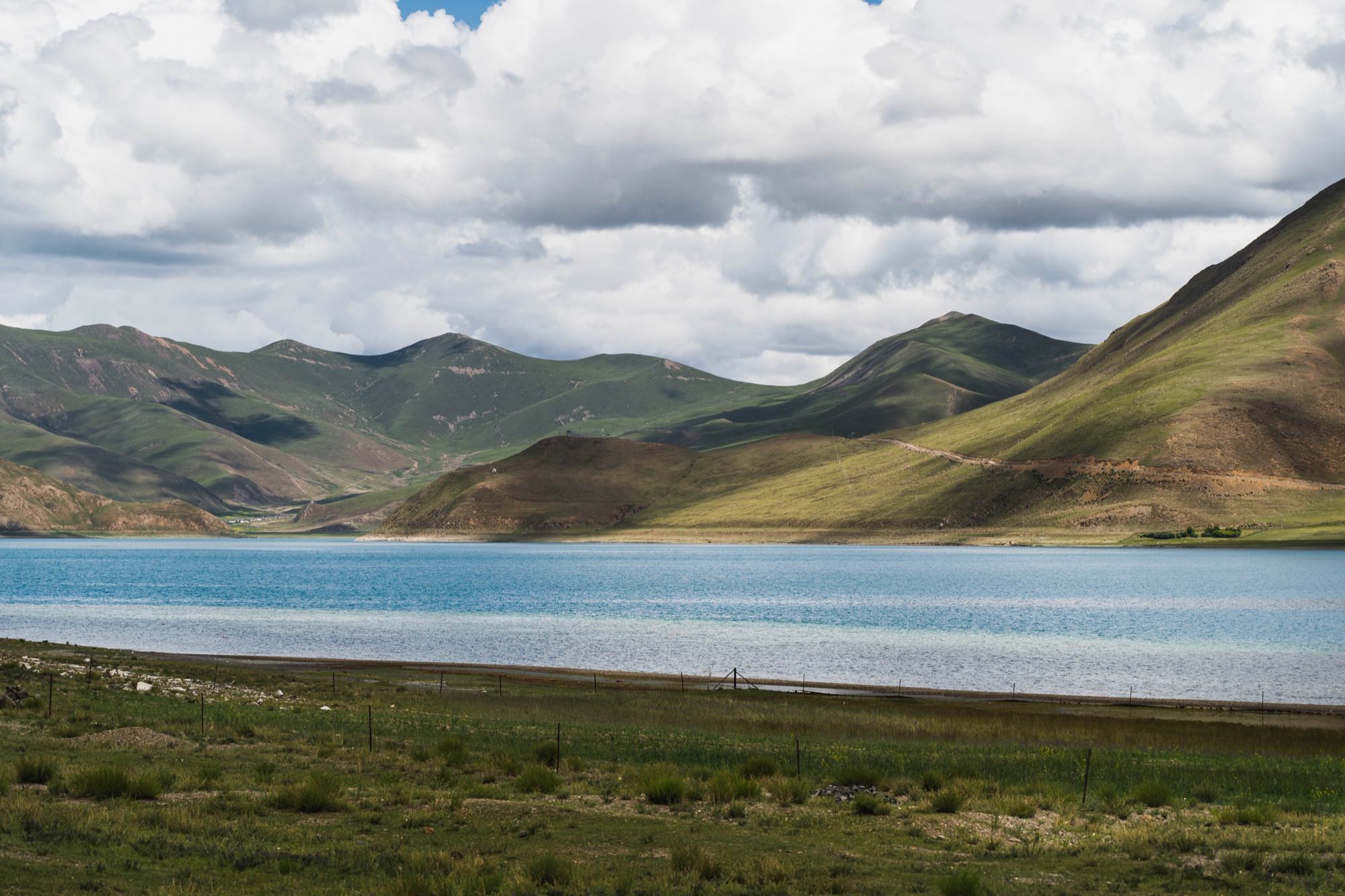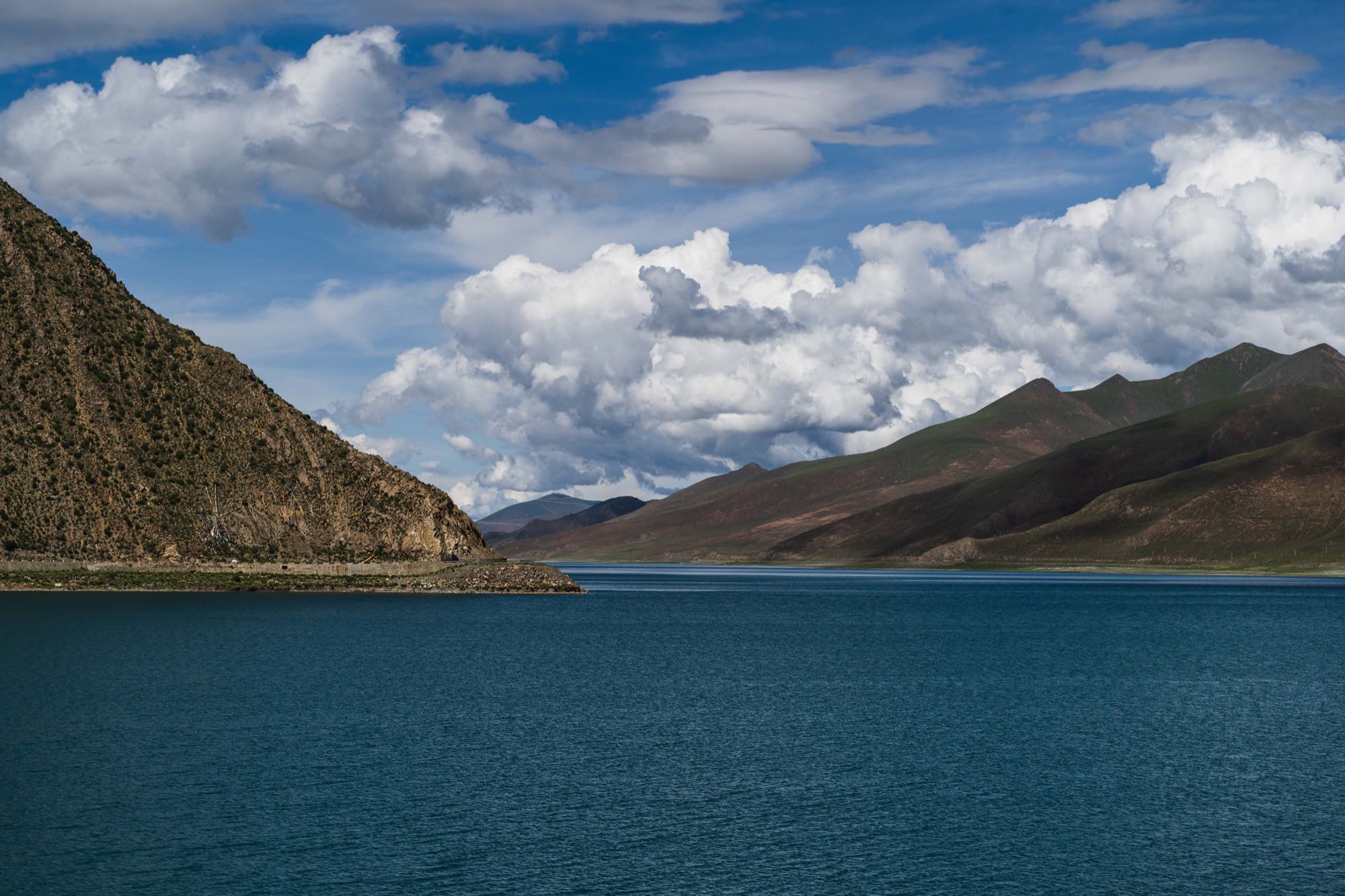 羊湖很大,沿着湖边公路一直开,天空是蓝的,湖水也是蓝的,很惬意。