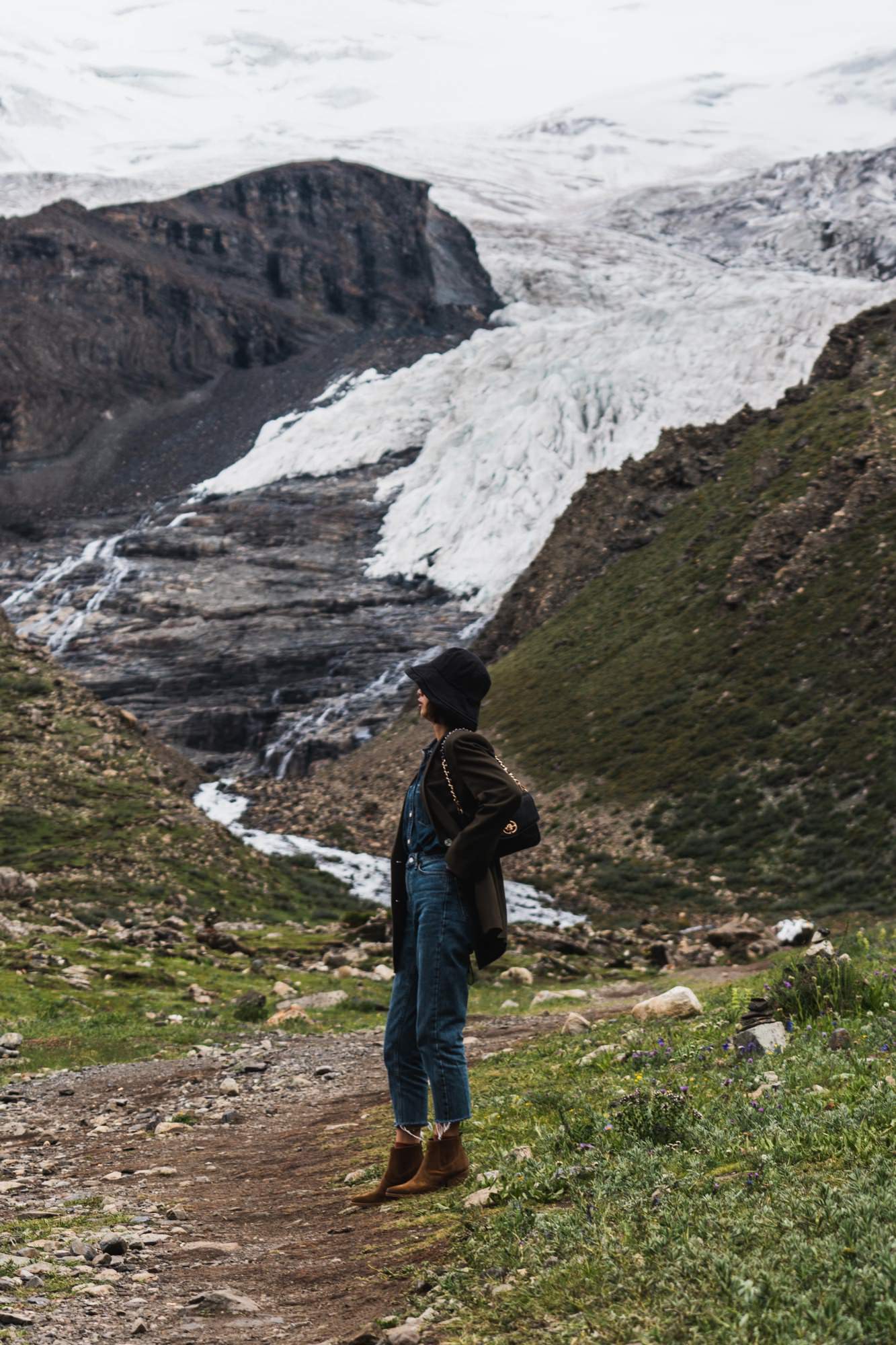 这个不知名小冰川距离卡若拉冰川还有一段距离,是一个冷门的小众景点,停了车,我和老婆准备徒步,去这个冰川下的小湖看一年(之前那个重庆老板娘给我们推荐的)。
