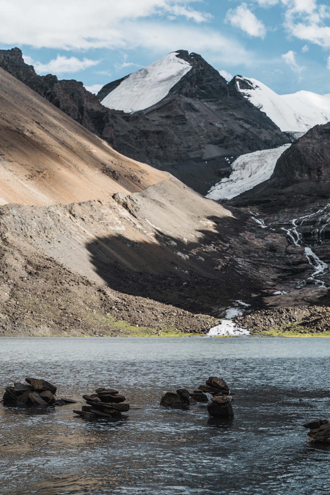 终于看到了小湖,冰川融水,在山谷里行程了一个天然的小湖。