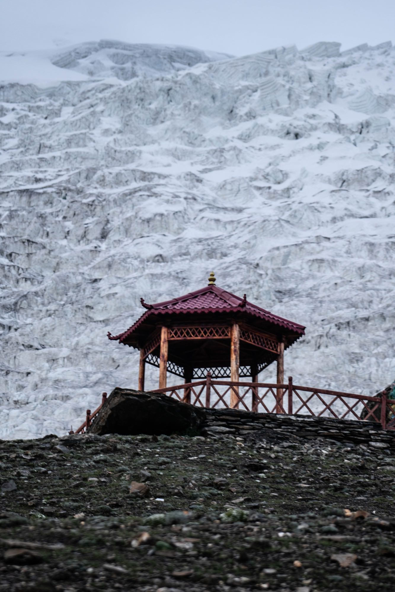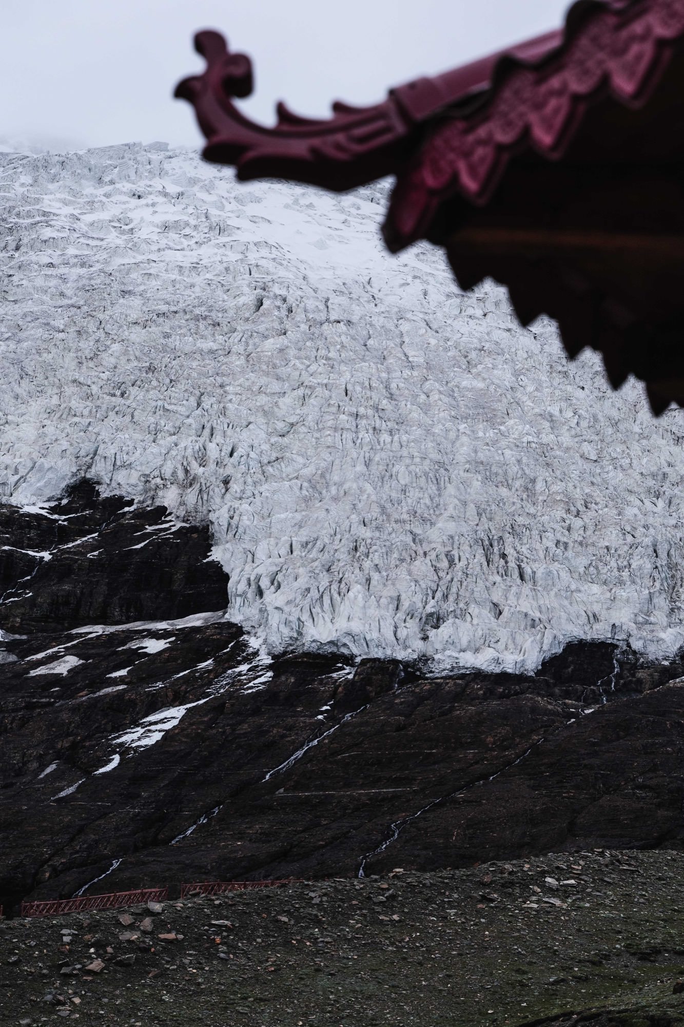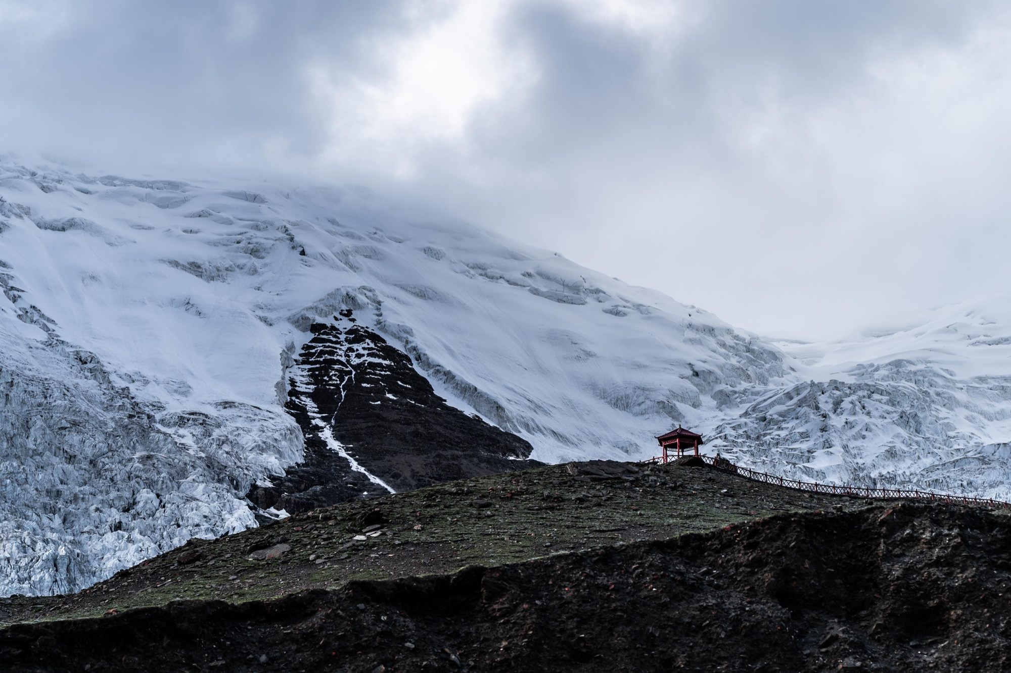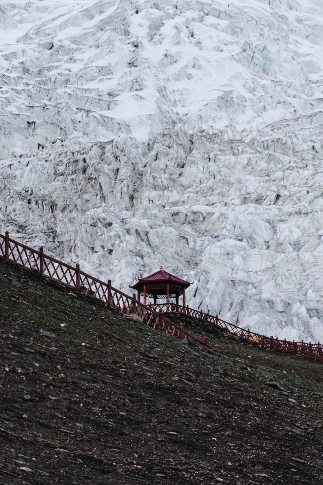 山腰上有一座亭子,拿出长焦,有一种冰川扑面而来的冲击感,可惜有点虚焦了,6500对焦还是有点捉急。