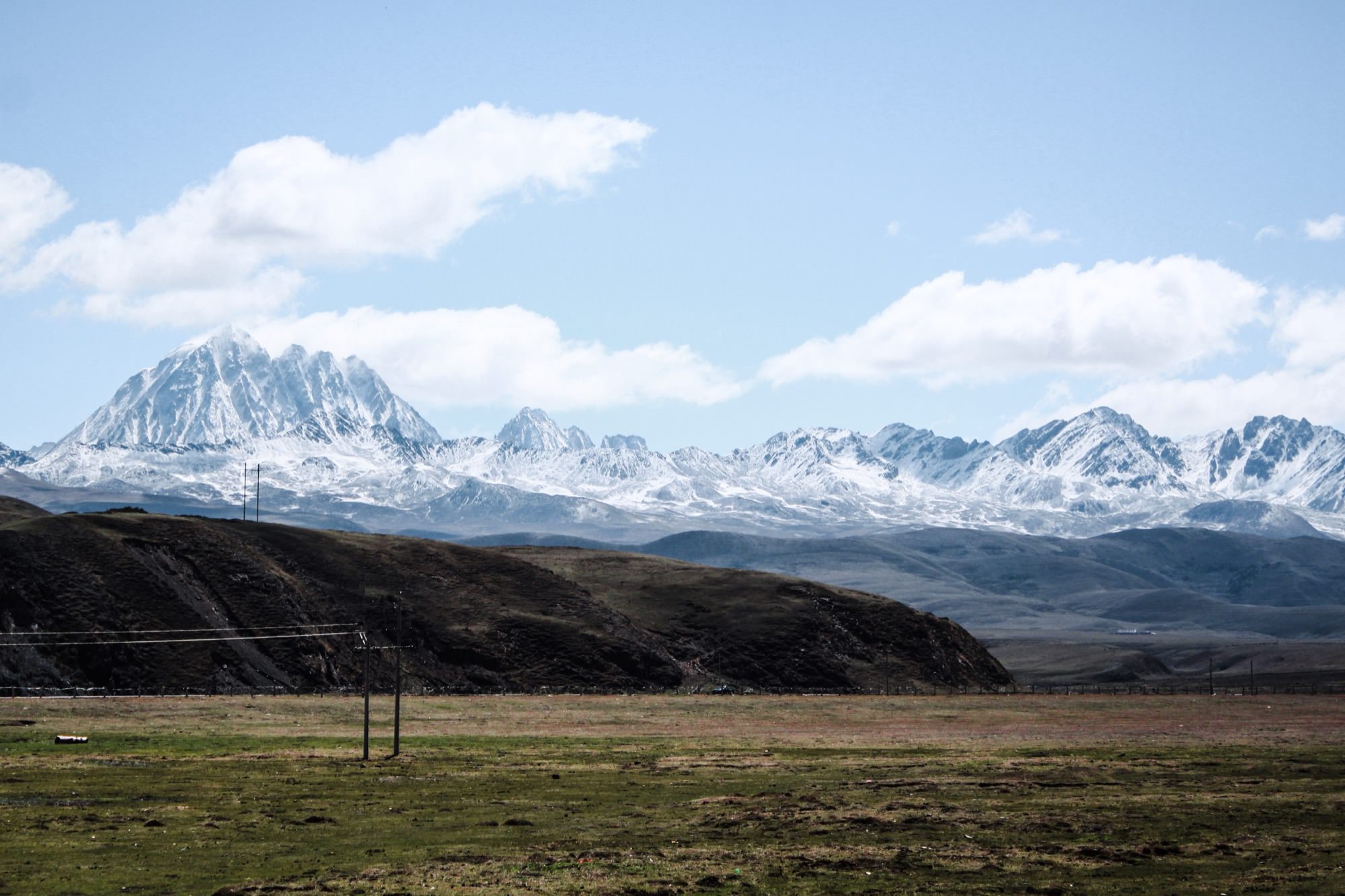 刚上高原,在新都桥休息一天以适应,大家包车去周围的草场放松,远处的雪山连绵。