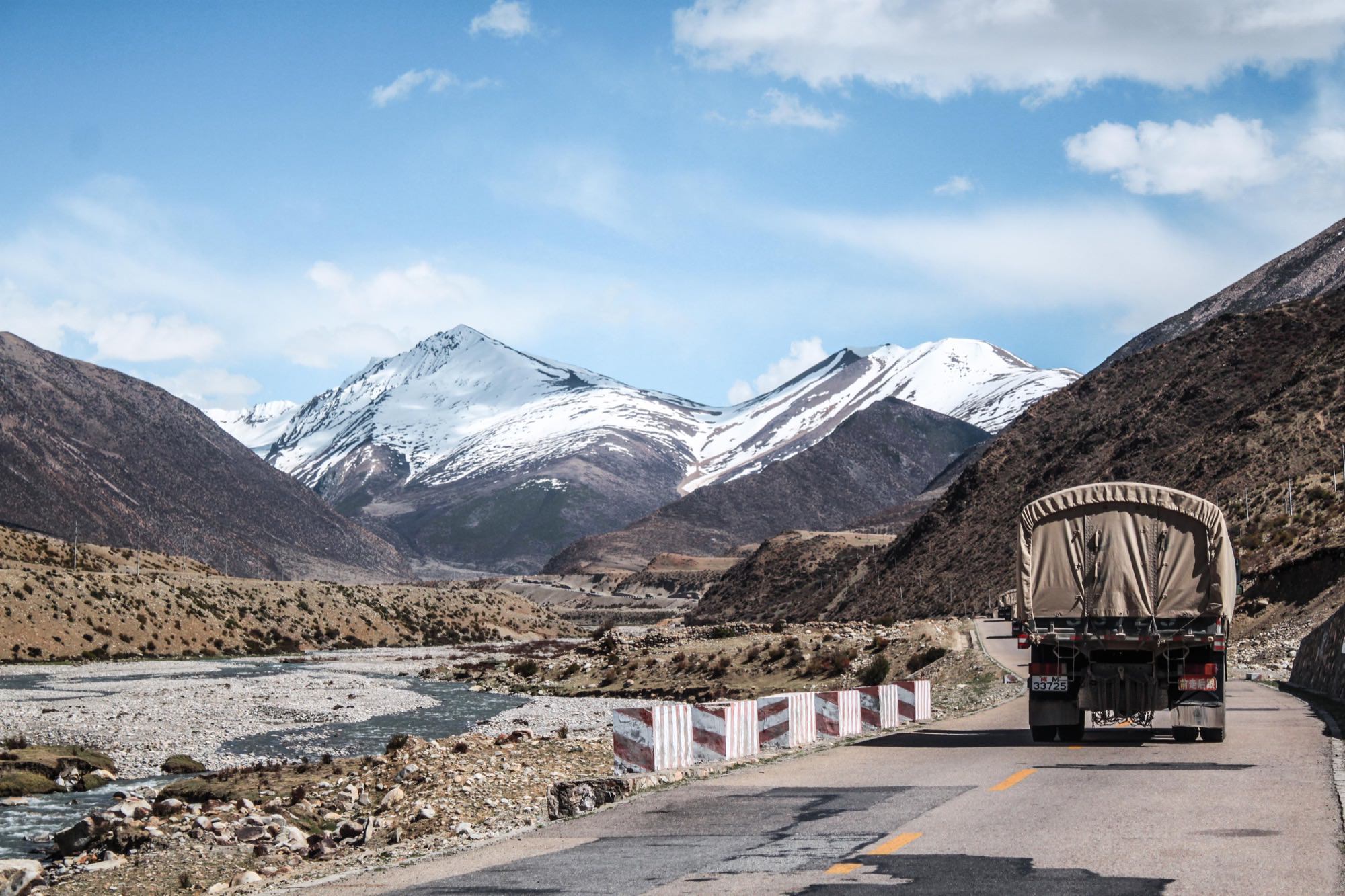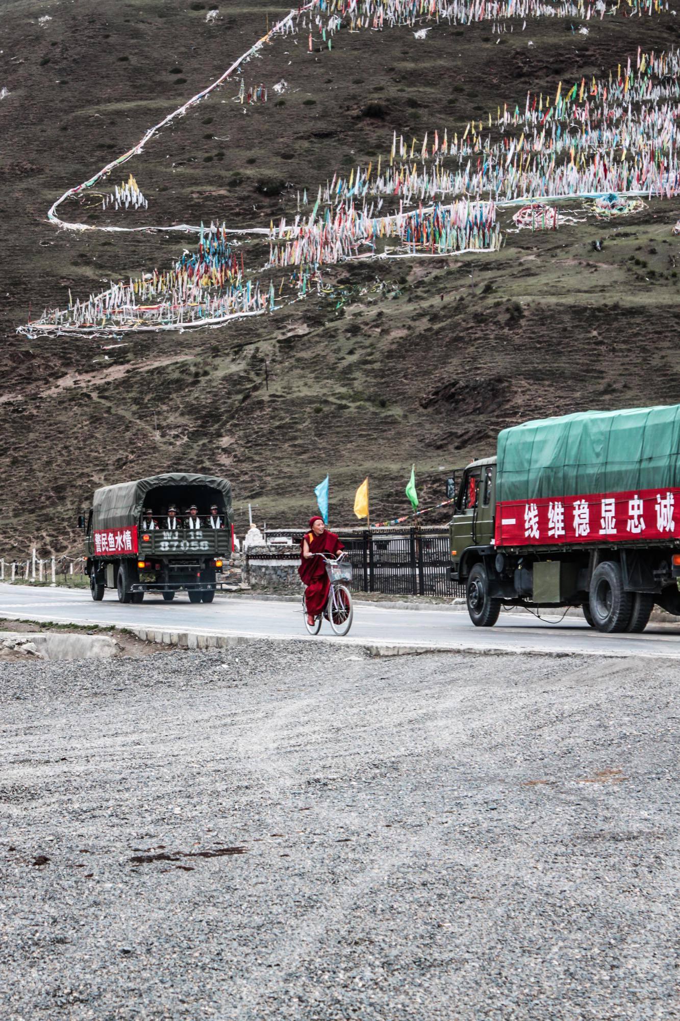 这是我最满意的一张照片,路过的运输车队,快乐的喇嘛。