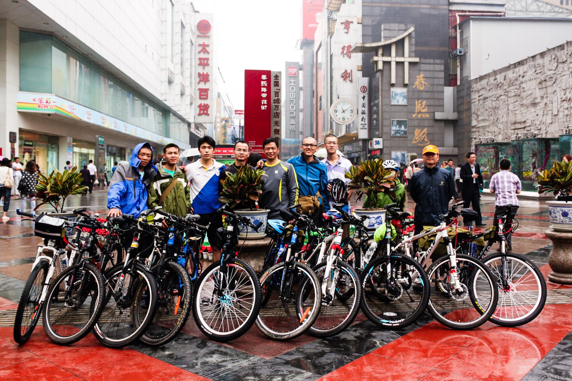 全队骑友,我们选择在武侯祠作为我们骑行的起点。给大家分享一个经验,所有正儿八经长途骑行的,都只会使用驮包,不会背包,如果在城市里见到背着背包的「落难骑友」,一定是骗子。