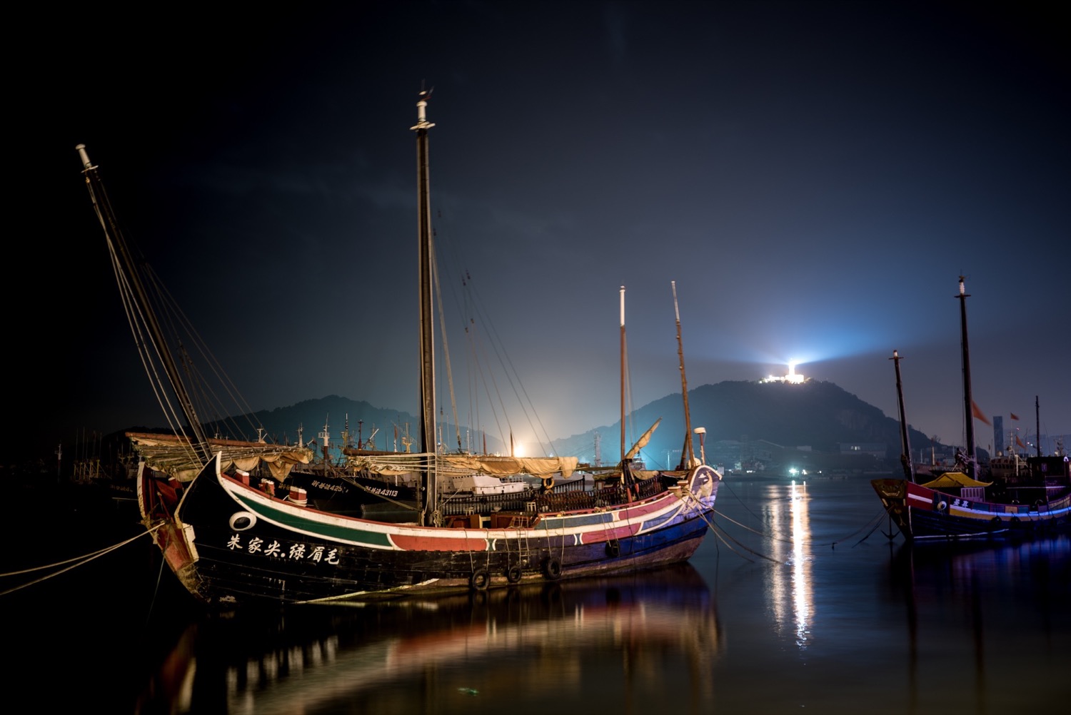 随便找了一家大排档,大排档的外面就是舟山的海港,舟山小岛众多,远处的灯塔灯柱在扫射海湾。