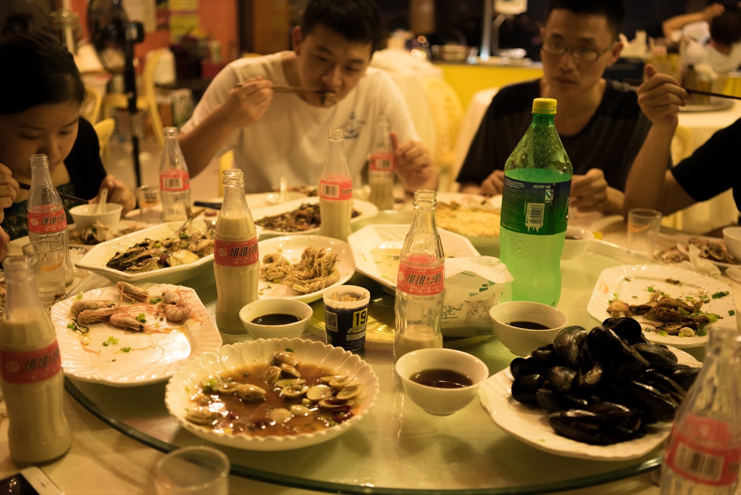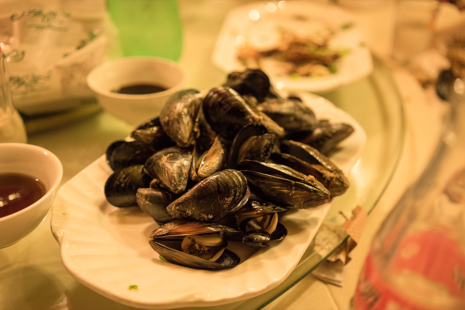 由于大排档一片橙黄色的灯管,拍出来的照片都是暖黄色调,既然来到舟山,吃的当然就都是海鲜,各种海味,好多以前都没吃过。
