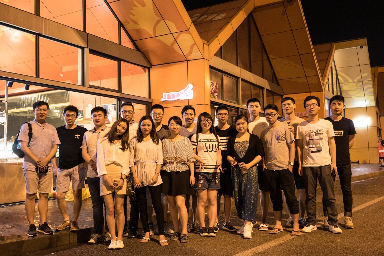 吃饱饭足,大家在大排档外面留影一张,各种黄光,真讨厌。