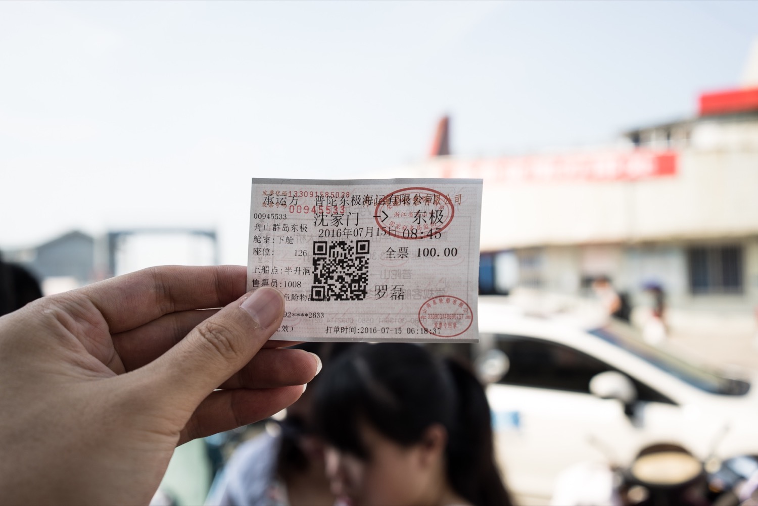 舟山经度比较靠东,加上正值夏季,六点钟一起床,窗外已经很亮了,看样子早上4点多就应该天亮了。简单地洗漱了一番,戴上隐形眼镜,整理好相机和背包,一行人驾车前往沈家门客运码头,车就停在了码头的停车场,价格不贵,只要25一天,从沈家门到东极岛的船票有几个价位,下舱的船票是100元。