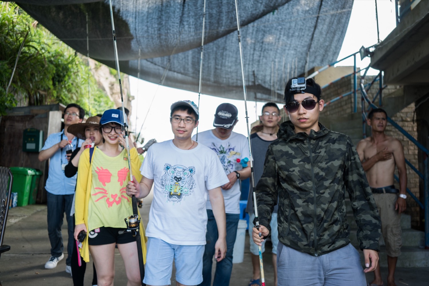 大家拿着杆子准备出海啦,Ted带了Gopro,我带了小蚁4K,但是我的没有防水壳。