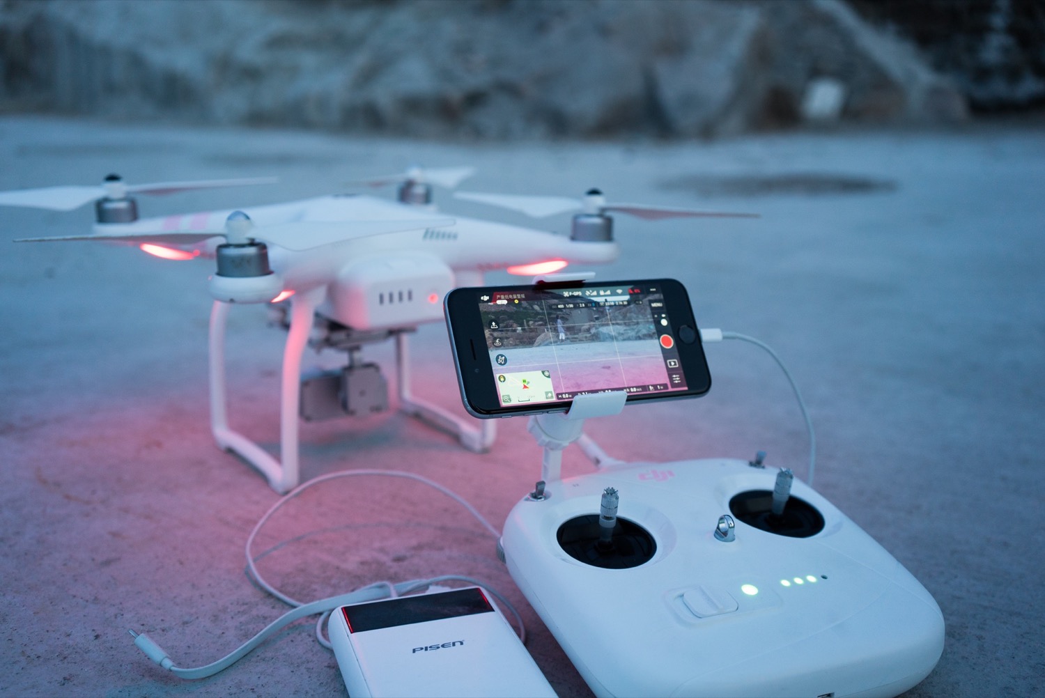我在安装无人机,妹纸拿着小蚁在旁边自拍。