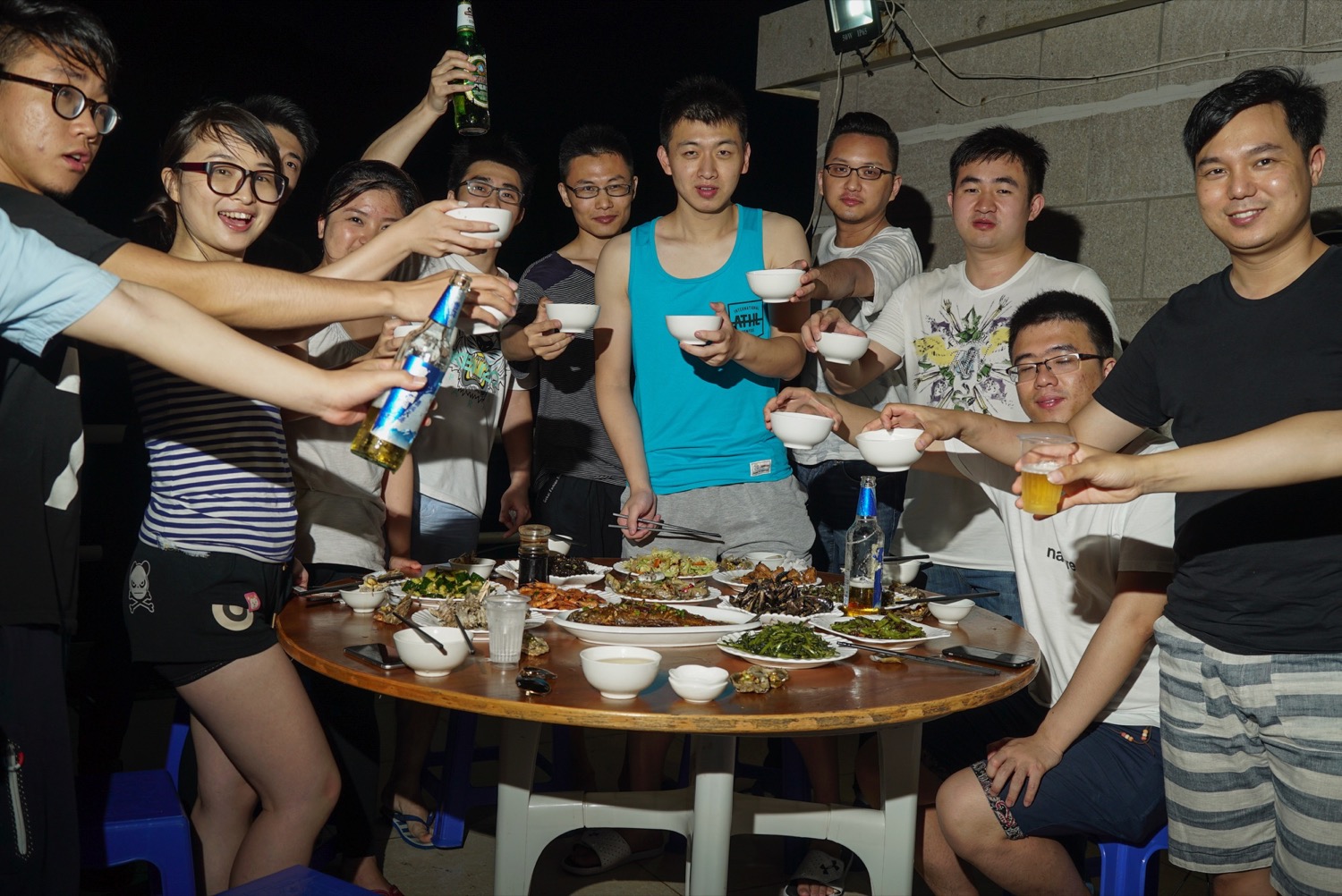 入夜了,大家来到旅店的天台聚餐,当然少不了闪光灯和合照,这里就不P了,还原真实场景。