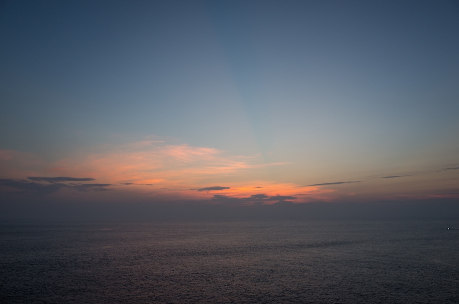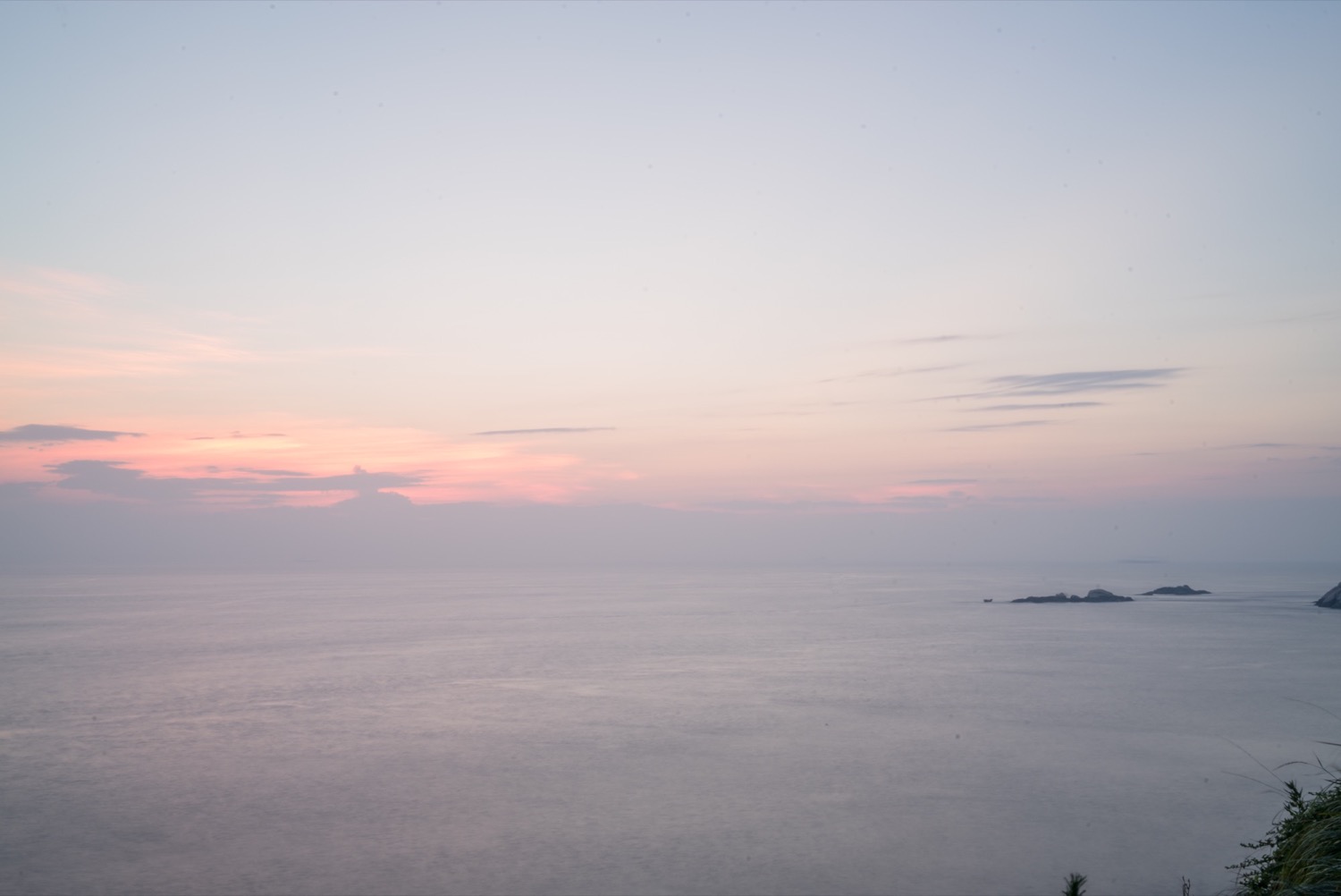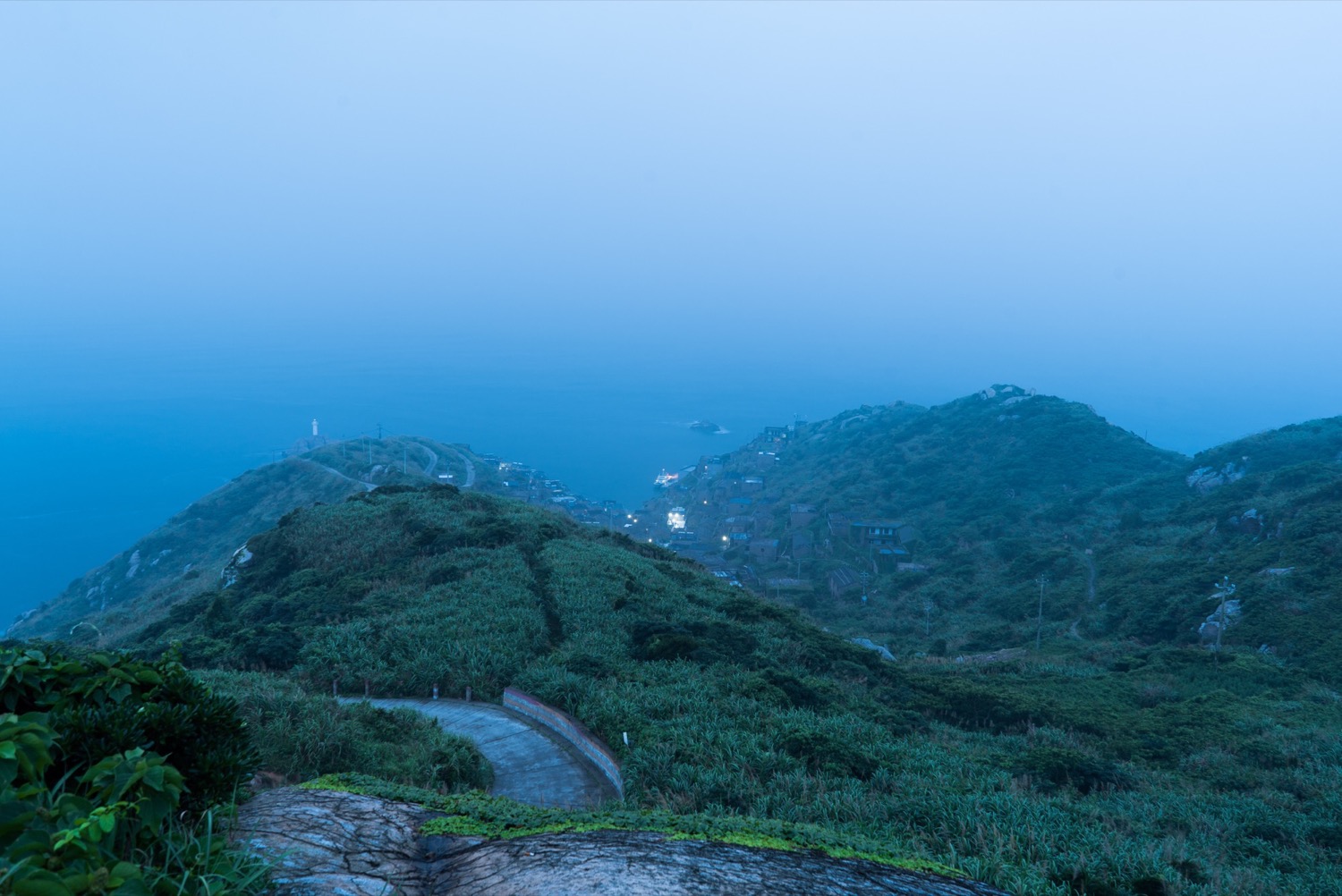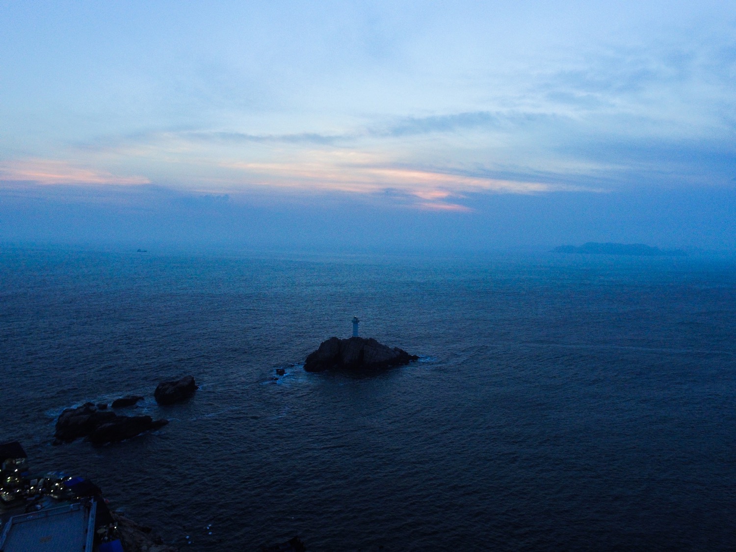 下午五点,终于爬到了半山腰,天已经慢慢暗了下来,海也变成了灰蓝色。