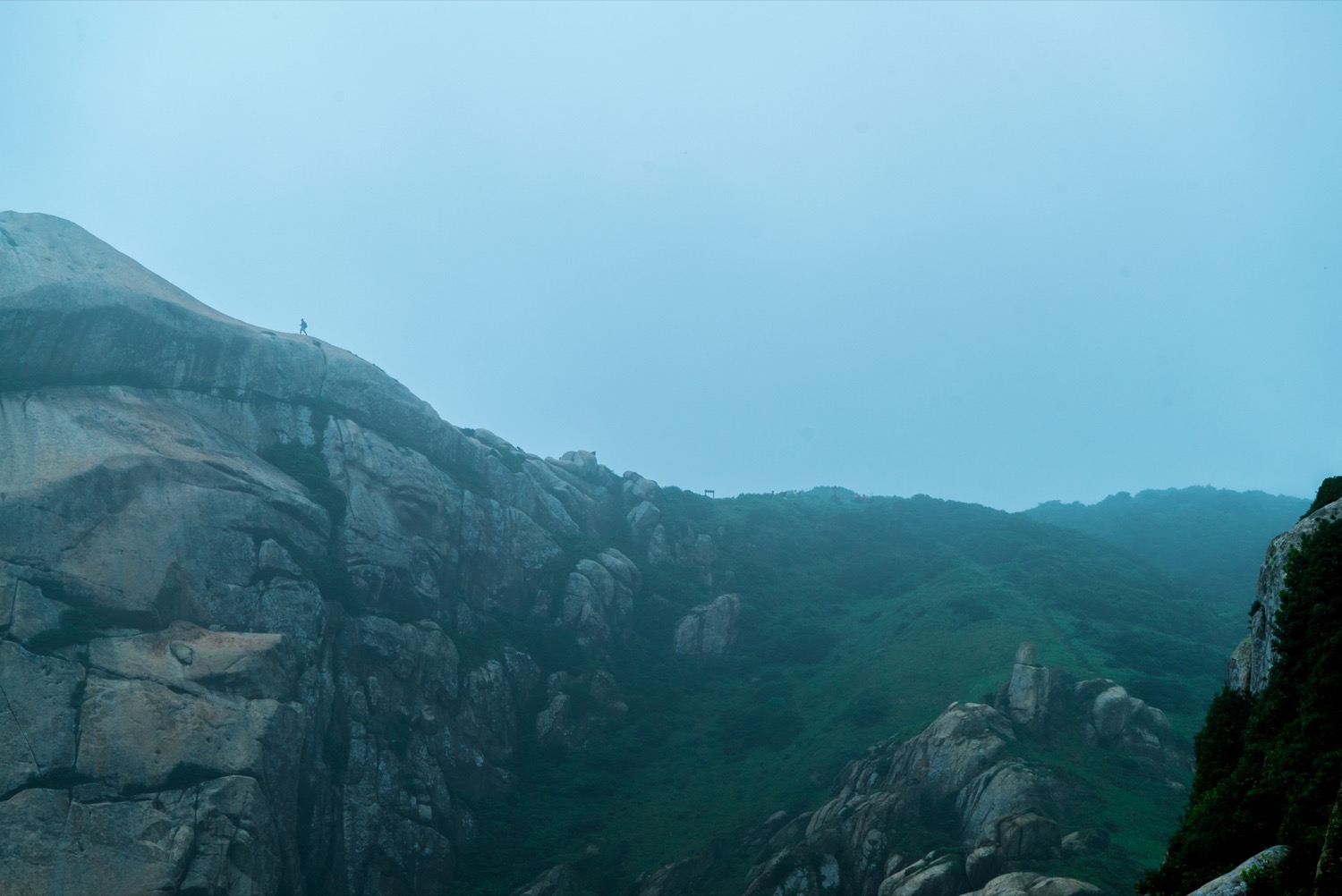 下午五点40的样子,终于到了最后登顶的线路,一块大大的岩石就这么展现在眼前,还是挺有气势的,远远地还可以看到山顶有一两个人。