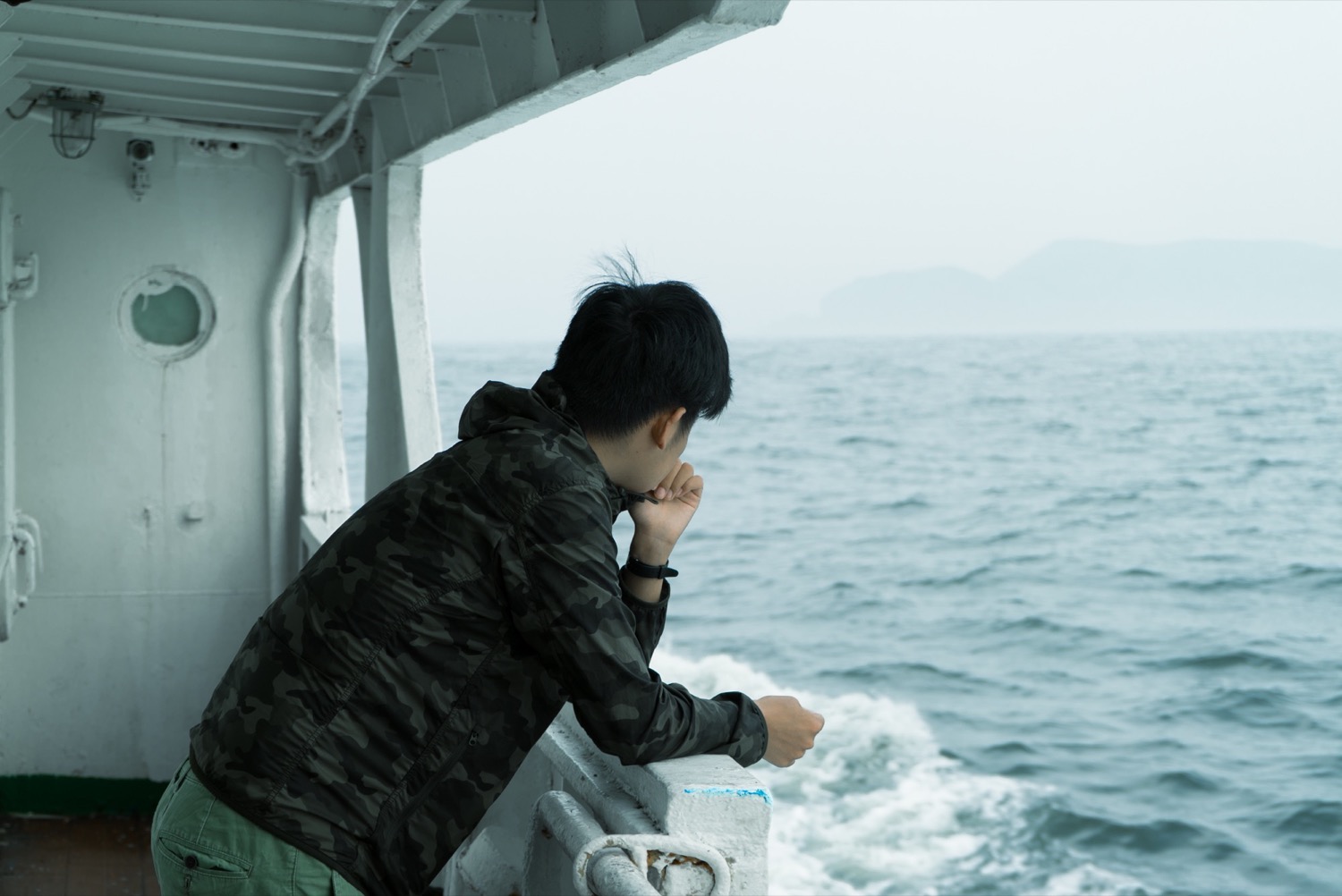 船开了,我和TED在甲板上吹风,海和天都是灰色的,倒也有点魔幻的味道。