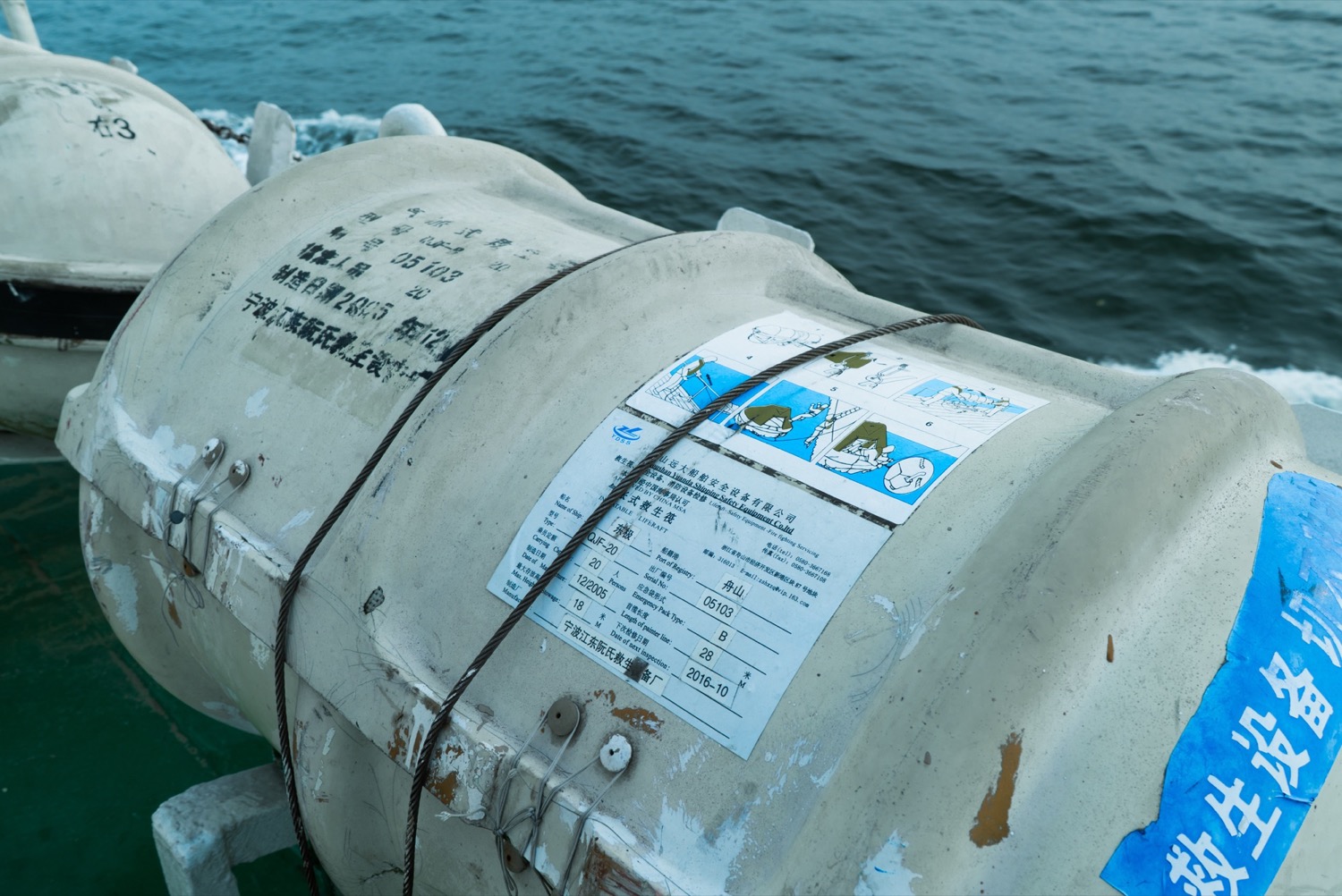 原来这个大桶里面装的就是救生艇,收纳之后还挺小的,不占空间,我还以为这船只有救生衣没有救生艇呢。