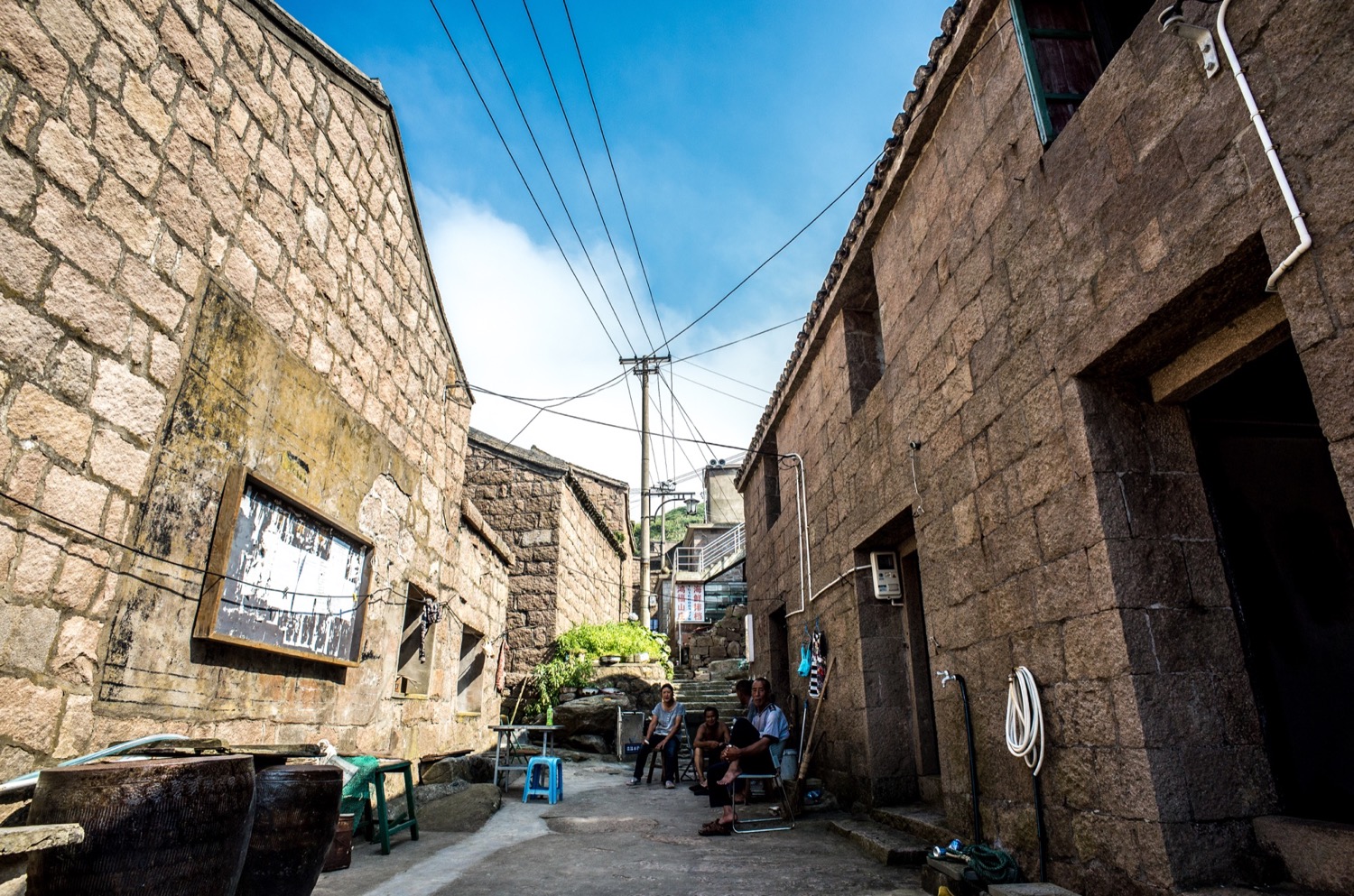 村子里乘凉的老人,东极岛上留下来的大多是中老年人,年轻人大部门都去大陆打工赚钱或者移居了。