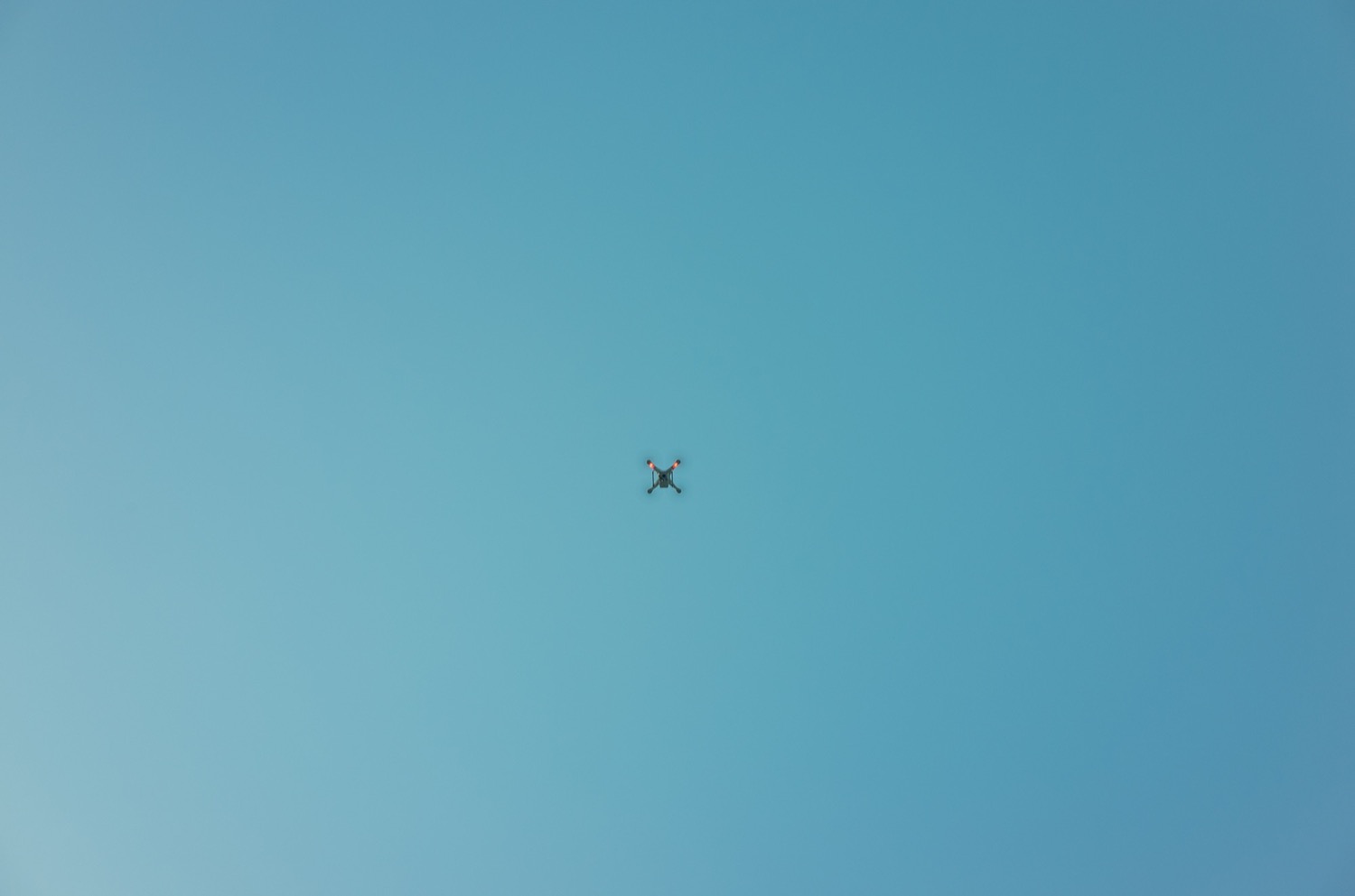 无人机起飞了,奇怪的是这里居然找不到GPS信号,山顶的风还挺大的,无人机无法定点悬停,被风一直吹着往南边飘,我只能时不时盯着天空控制。