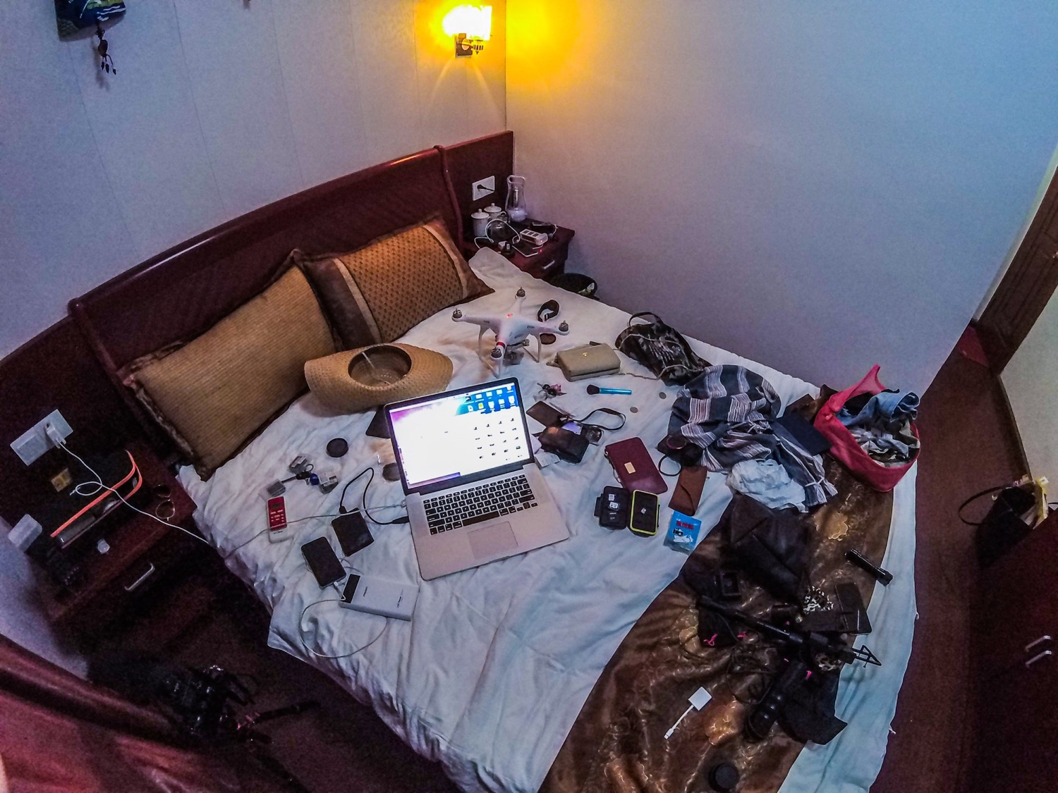 回到房间,铺开装备,房间的条件倒不错,就是由于供电不稳定,老是停电,随身带一个手电还是挺有必要的。