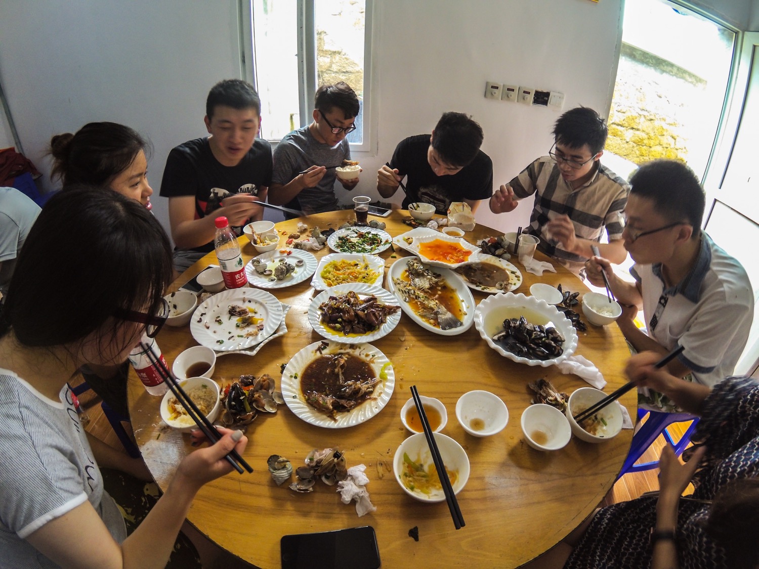 睡到中午起床,去宾馆二楼的饭店吃饭,大家已经开动了,在岛上每餐吃得还是很丰盛的,也这是团队出行的好处。