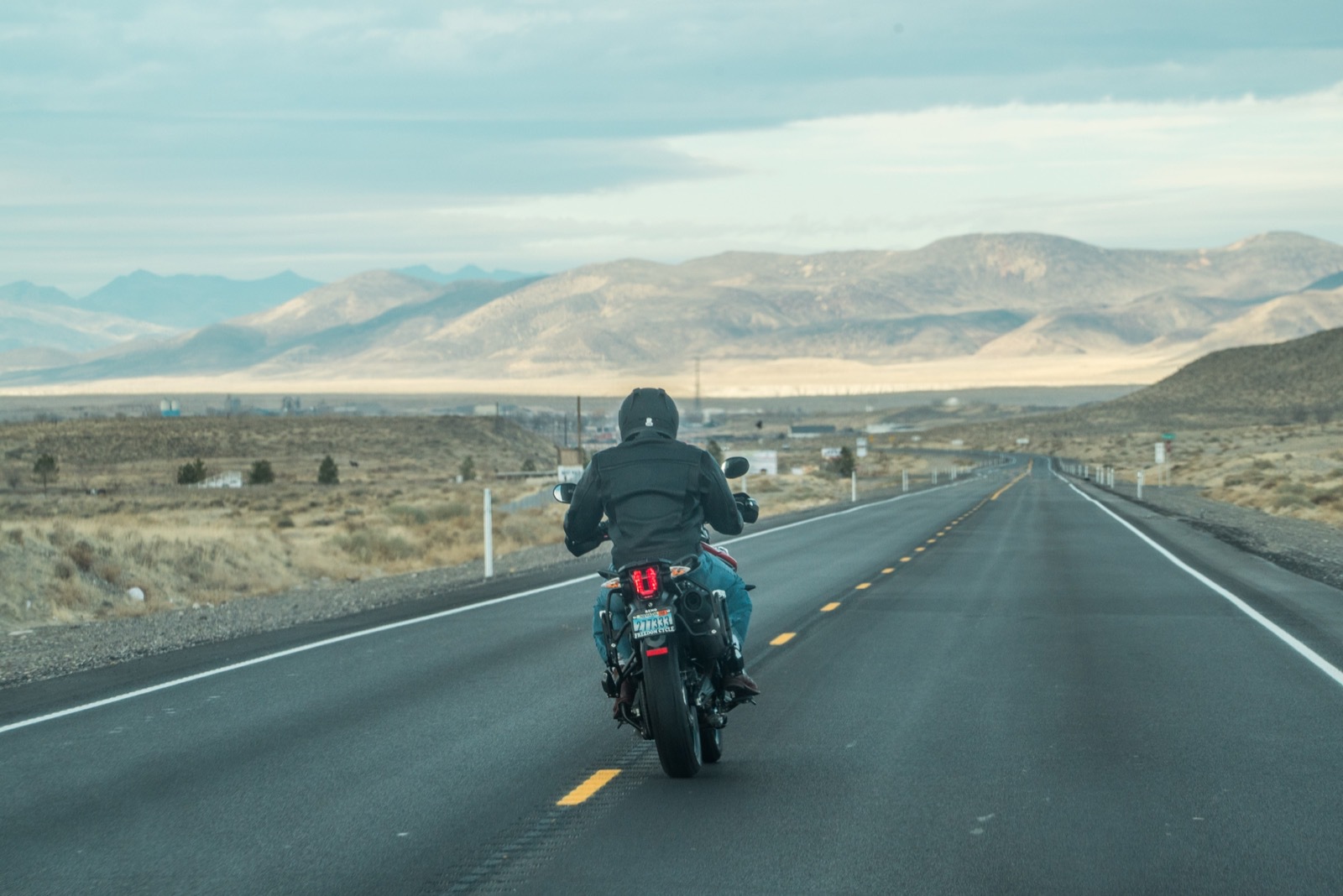 雨刮虽然断了,车还是能开,也不能干等着,开着车在卡森城附近逛了逛,路上见到机车党,开着摩托,在这种地方开车,应该很爽吧。