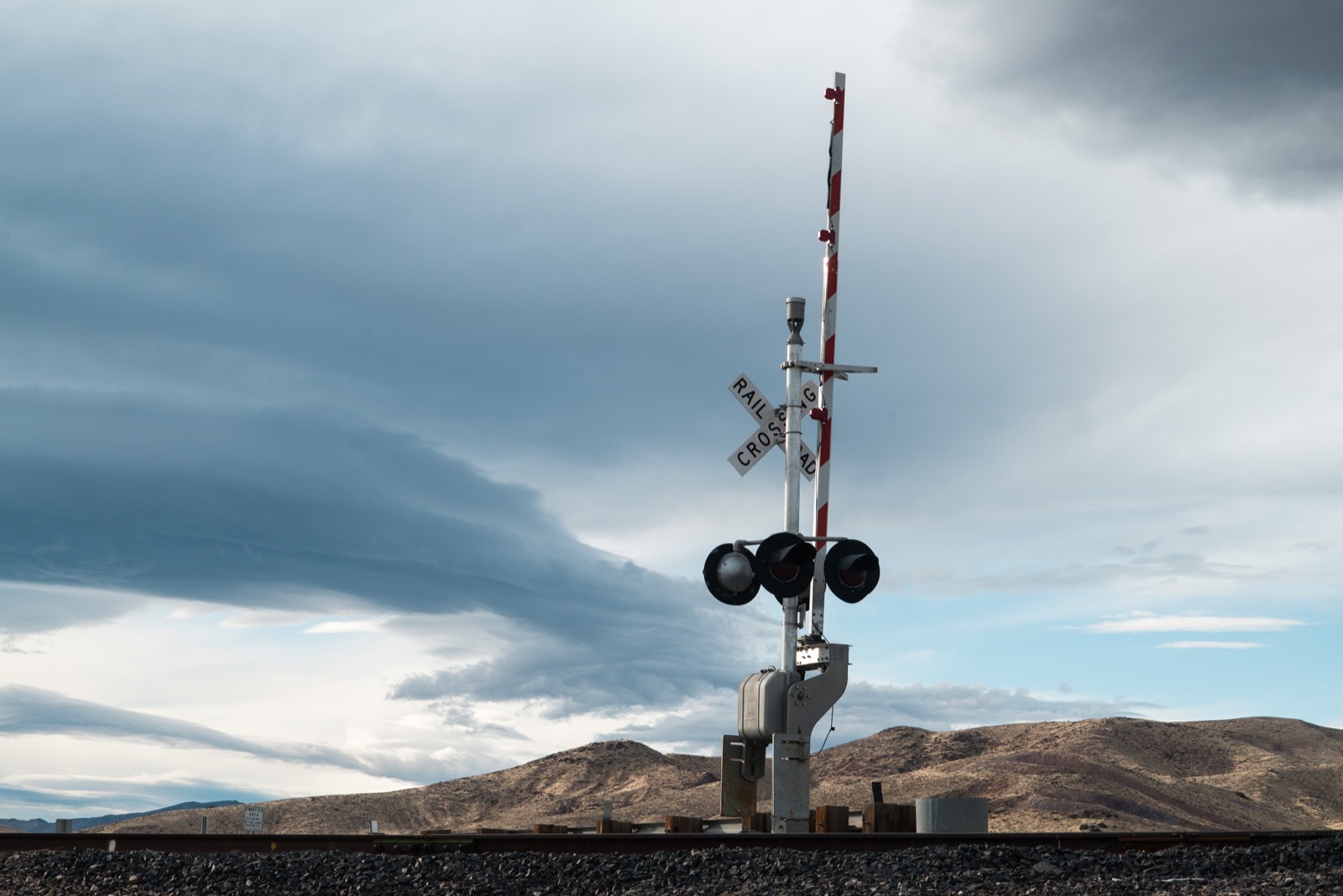 虽然美国以公路运输为主,但是也有铁路,路过一个铁路道口。