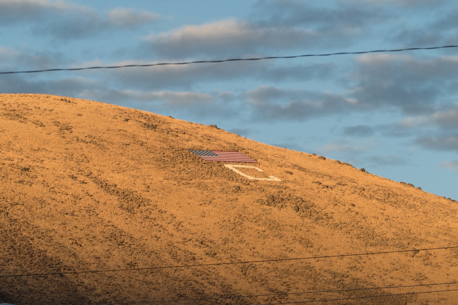 远处的山坡上,一个大大的美国国旗,讲真,我感觉美国人挺爱国的,随处可见国旗和荣军标志,毕竟美人希。