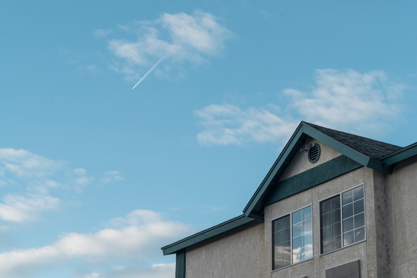 在卡森的第二晚,依旧住昨晚那家酒店,第二天起床,天气不错,酒店外面的天空,一架飞机飞过。
