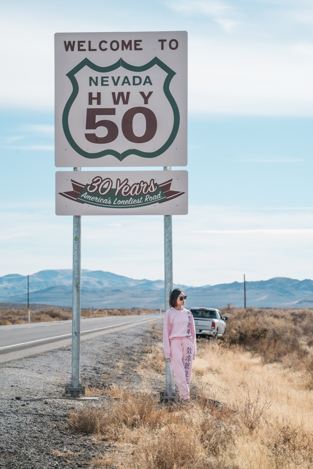 Welcome to NEVADA HWY 50, American Loneliest ROAD。美帝最孤独的公路。妹纸这套衣服是我的同学的独立品牌。