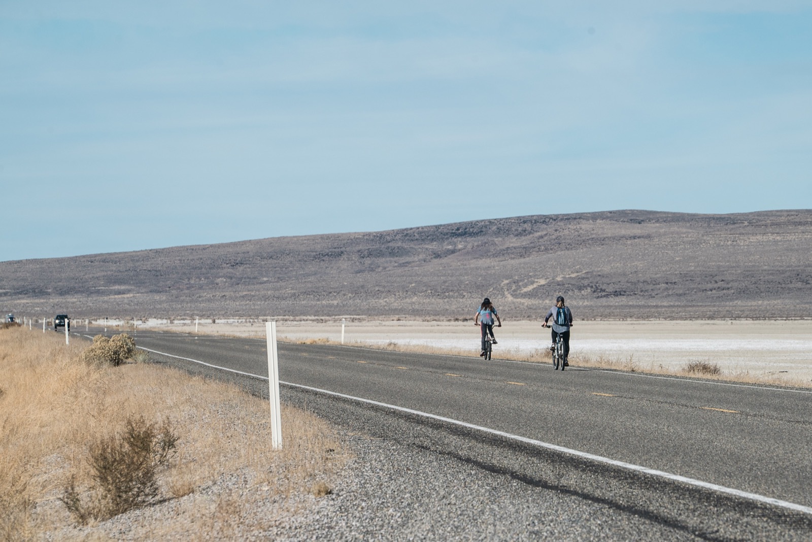 第二天,前往这次旅行我们最后的目的地:死亡谷。随着向死亡谷的逐渐接近,路边的地貌颜色越来越单一,越来越荒凉。路上见到一个骑行者,回到了南方,又到了白天可以穿短袖的气候了。