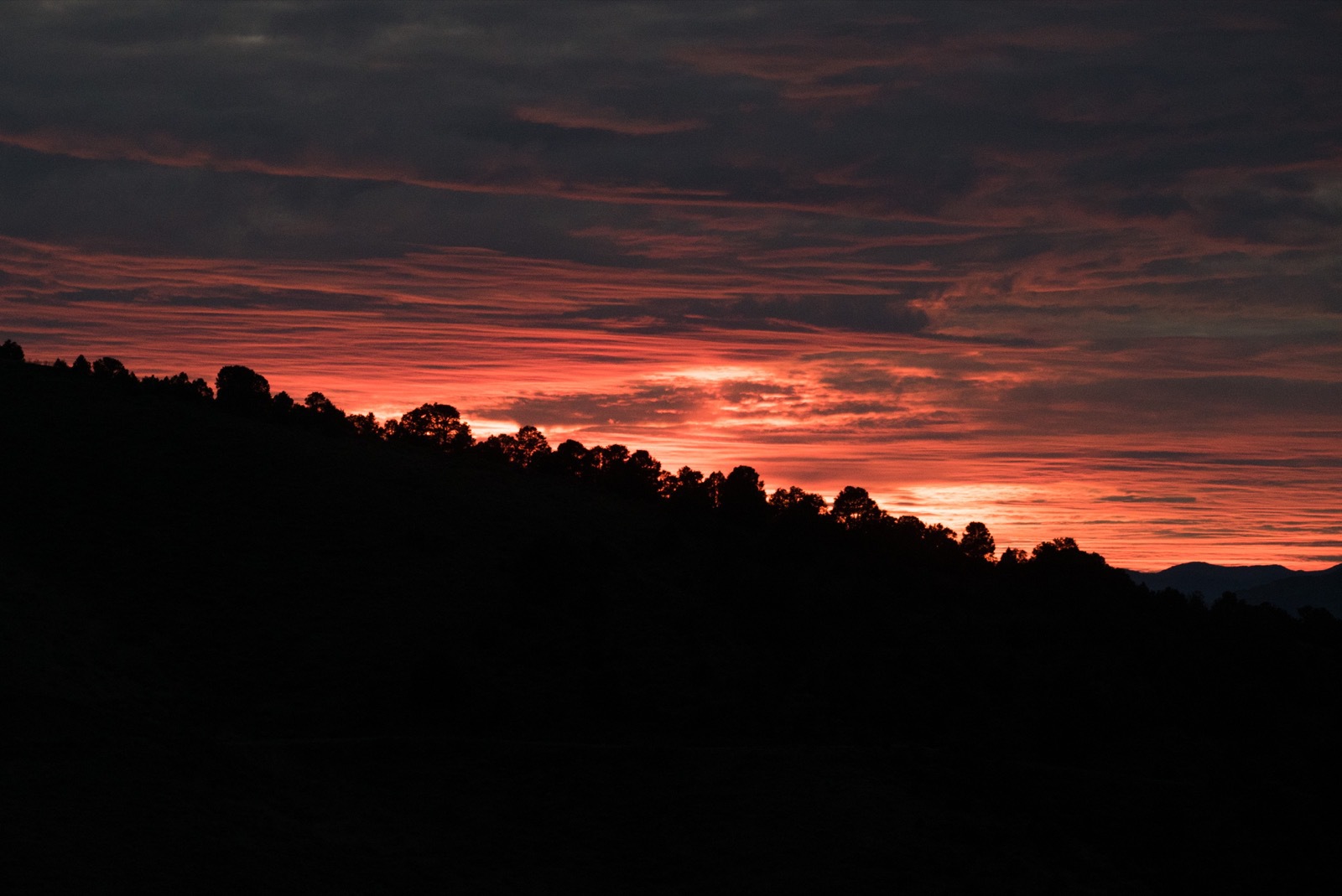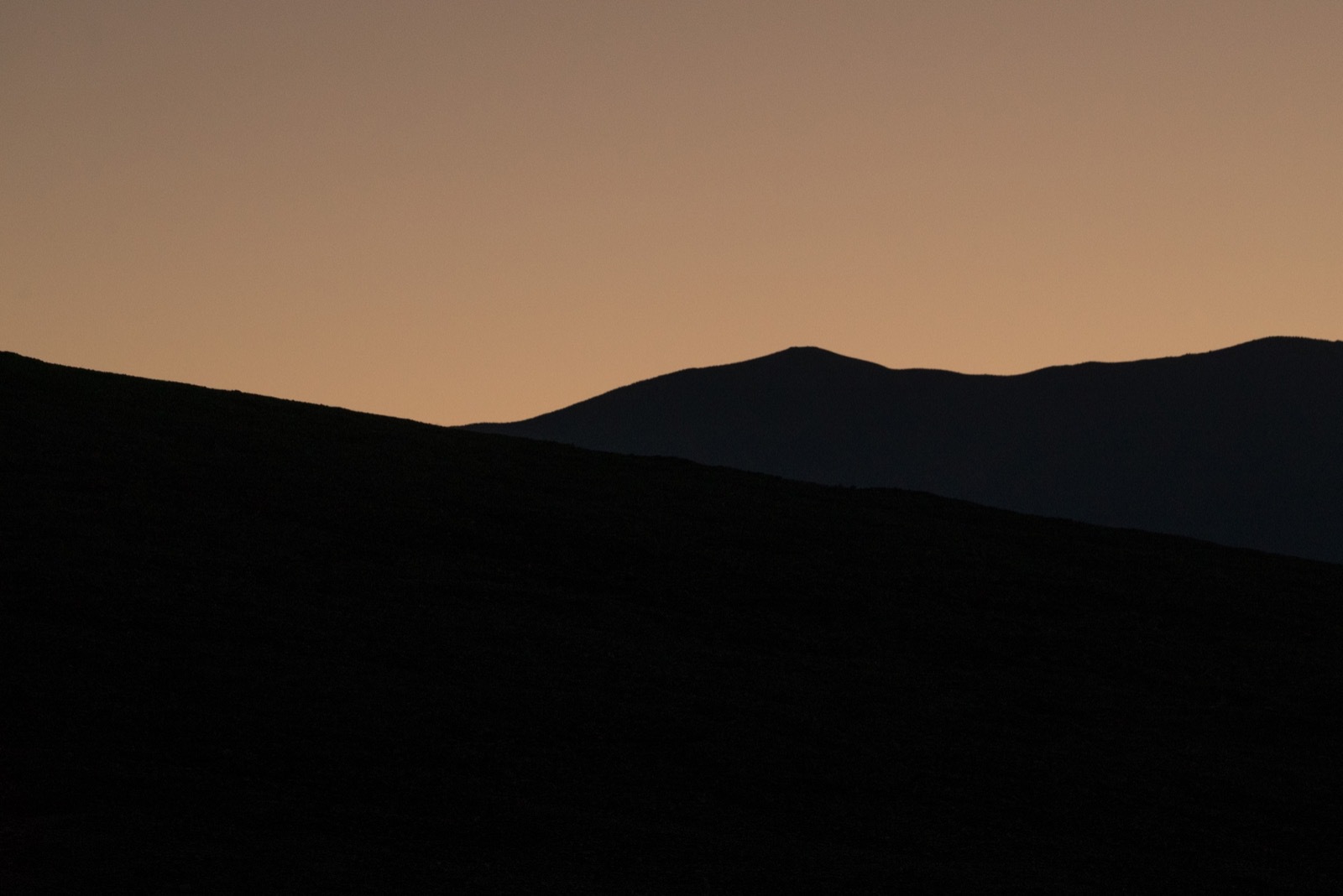 太阳落下了,远处的山脉映入眼中的简影,光影魔术。