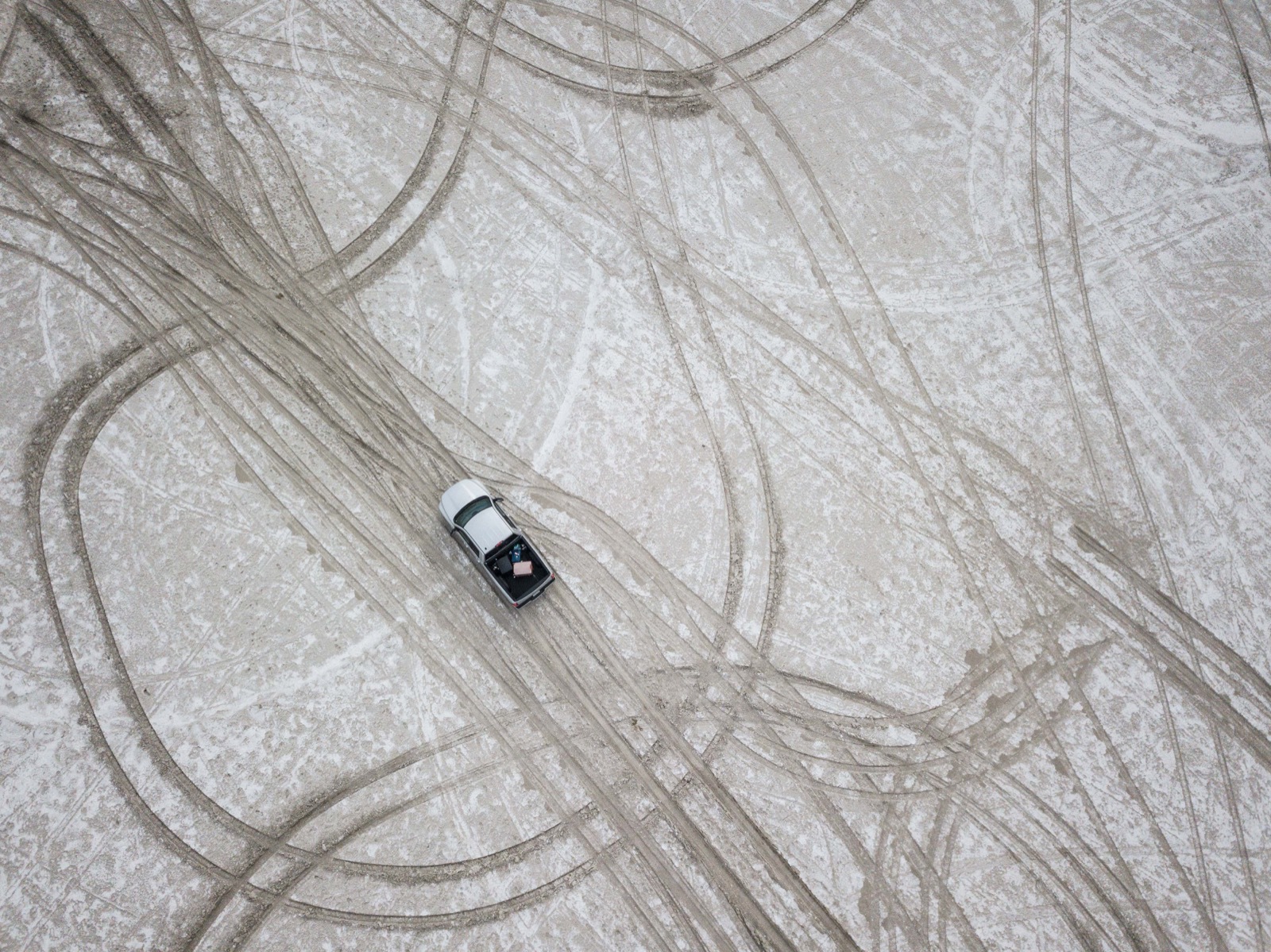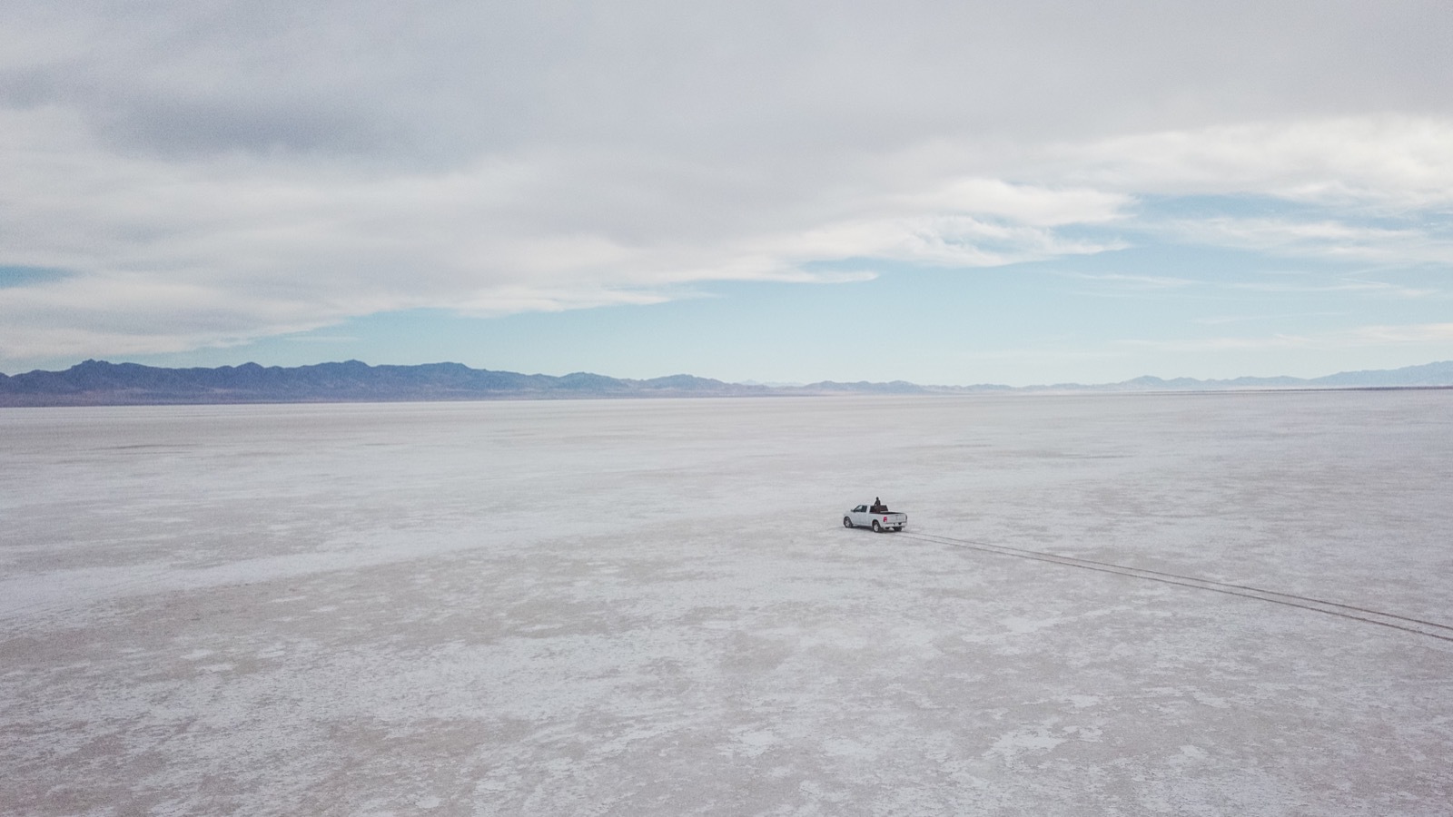 开着车直接来到干竭的盐碱湖面,地面上的轮胎印记,可以看出也有不少其他在这里飙车。给大家看一段10秒的段视频,感受下。