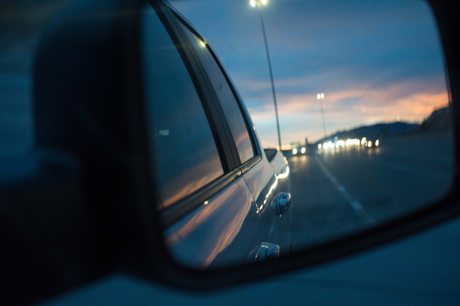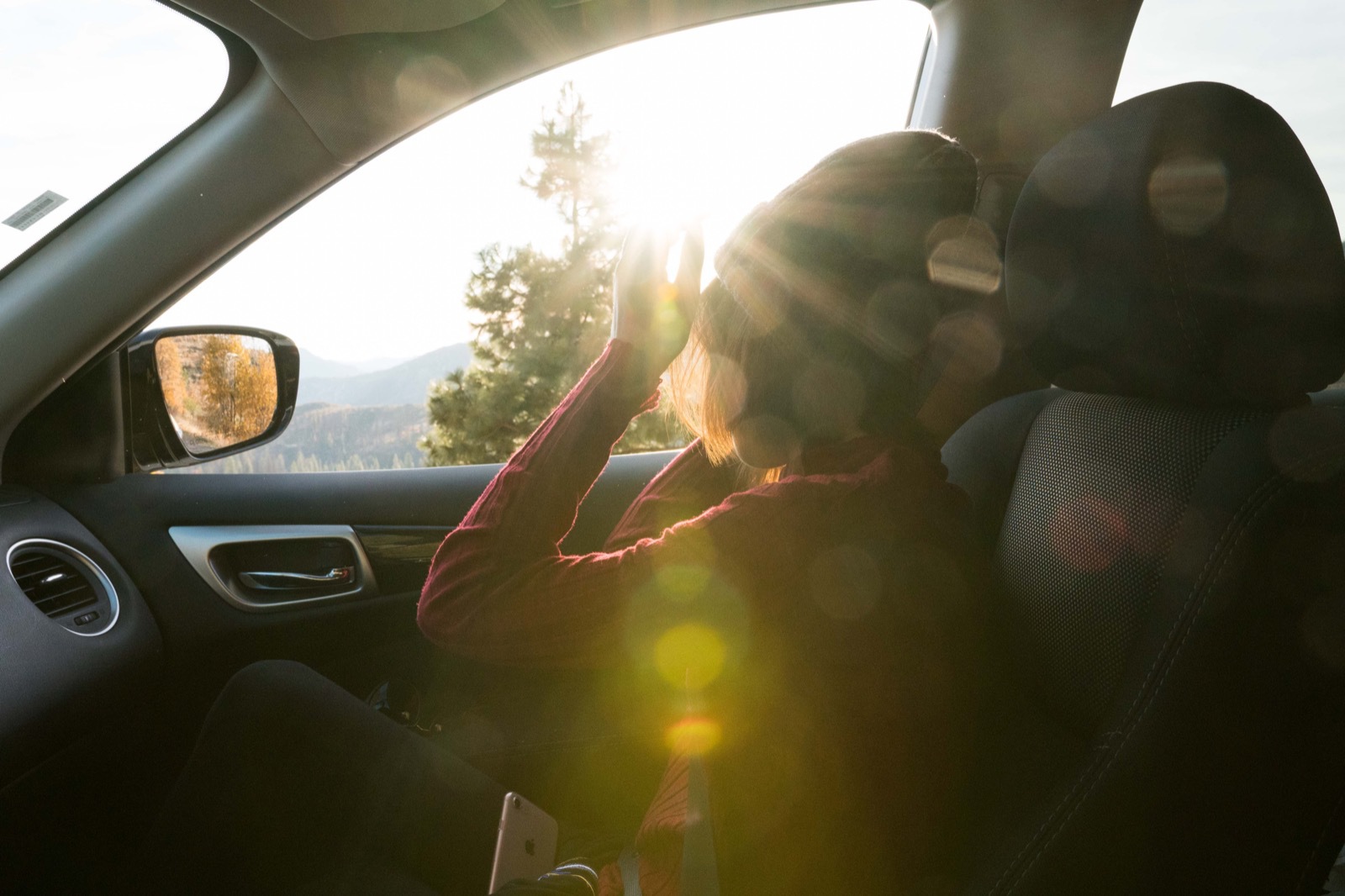 太阳慢慢落山了,阳光直射,对着太阳开车时,墨镜是必不可少的。