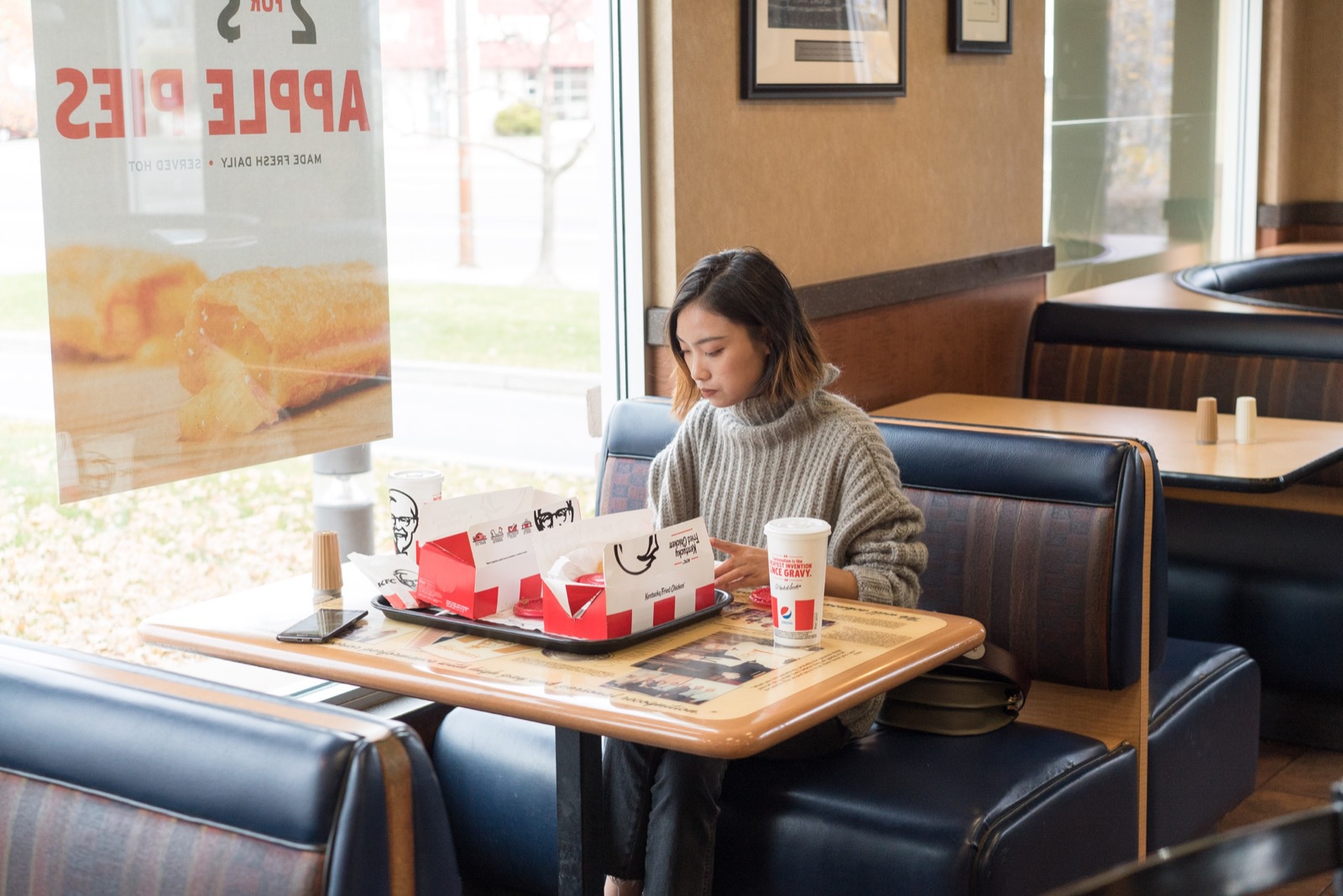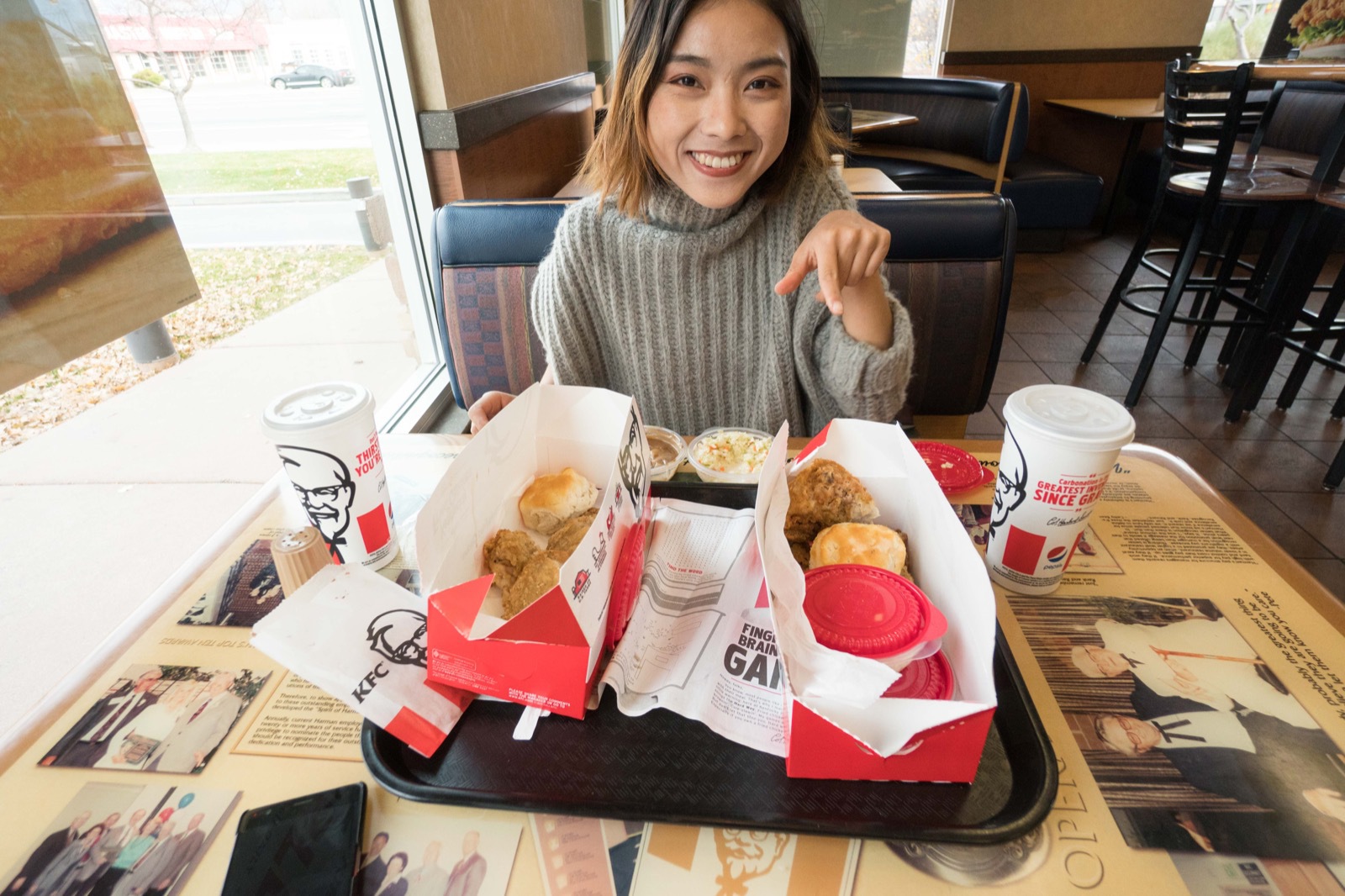 点餐处,小哥见我拿着相机,还很high地跟我打招呼,我跟小哥说"This is why i come to salt lake city",「这里就是我为什么选择来盐城湖的原因」。肯德基老爷爷应该会很感动吧。