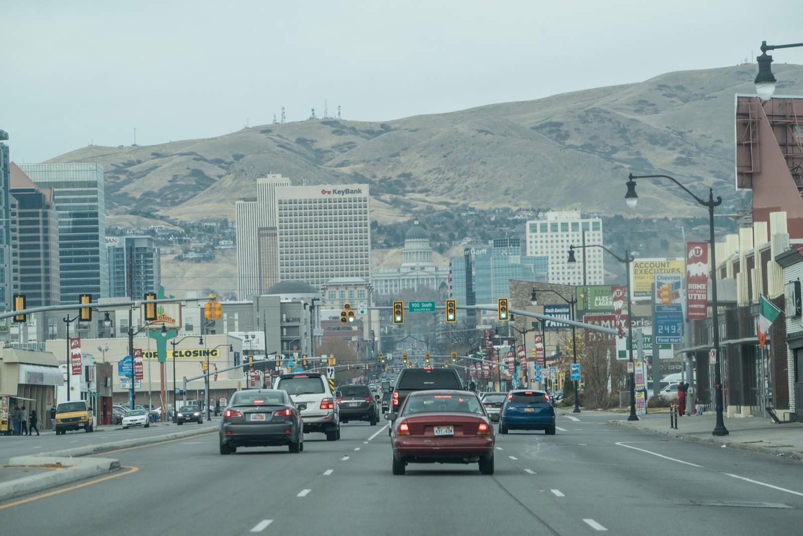 前往盐湖城的高速路上,车还挺多的,马上就要到圣诞节了,见到不少人皮卡后面放着圣诞树。盐湖城位于犹他州,是摩门教聚居的地方。
