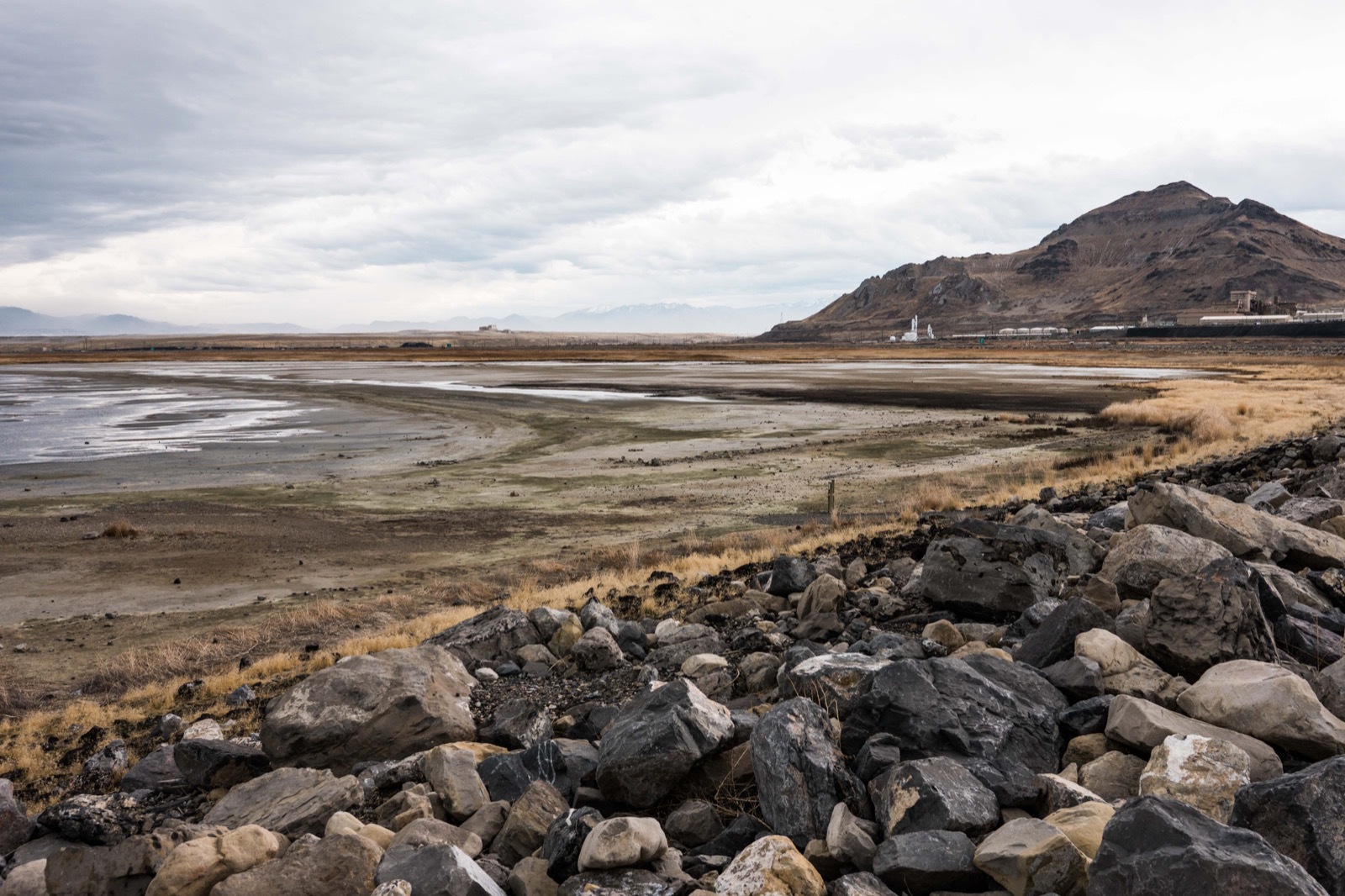 第二天,前往拱门国家公园,离开盐湖城之前,心想来了盐湖城,不去看看大盐湖,也是有点不厚道,往南开了20多公里,来到大盐湖旁,由于是枯水季,岸边的礁石都露出了。