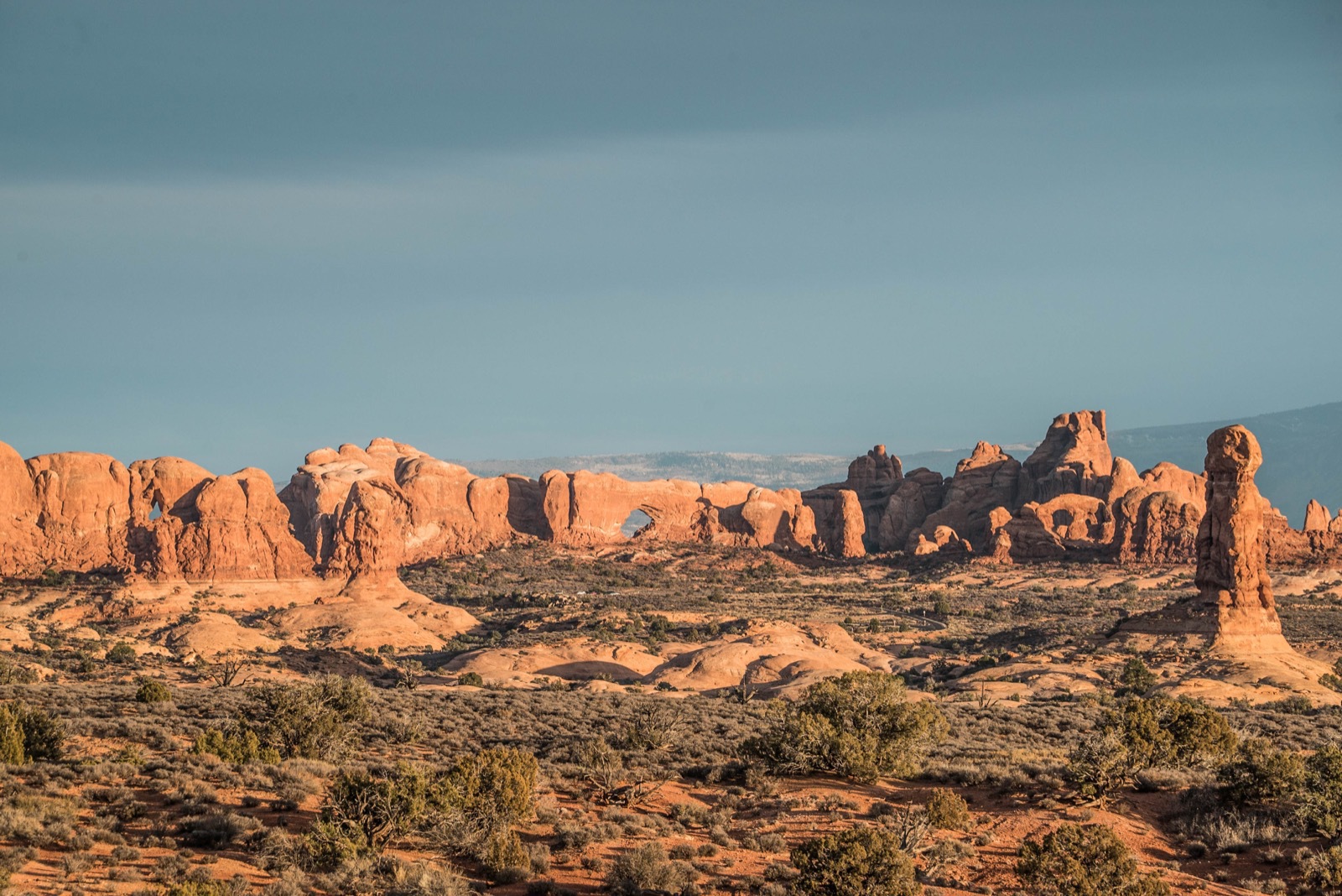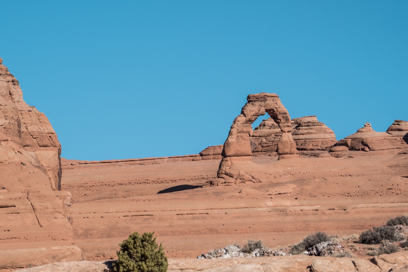 犹他州的名片地标「精致拱门」,虽然就在眼前,但是隔着一个峡谷,走过去得两个小时。