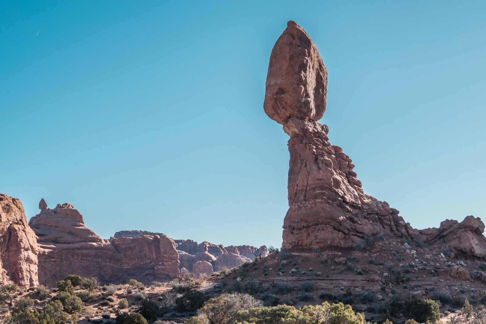 第二天,正式开始拱门国家公园的徒步。这就是著名的「平衡石」,据说她的孪生兄弟没坚持住,已经倒了一个。